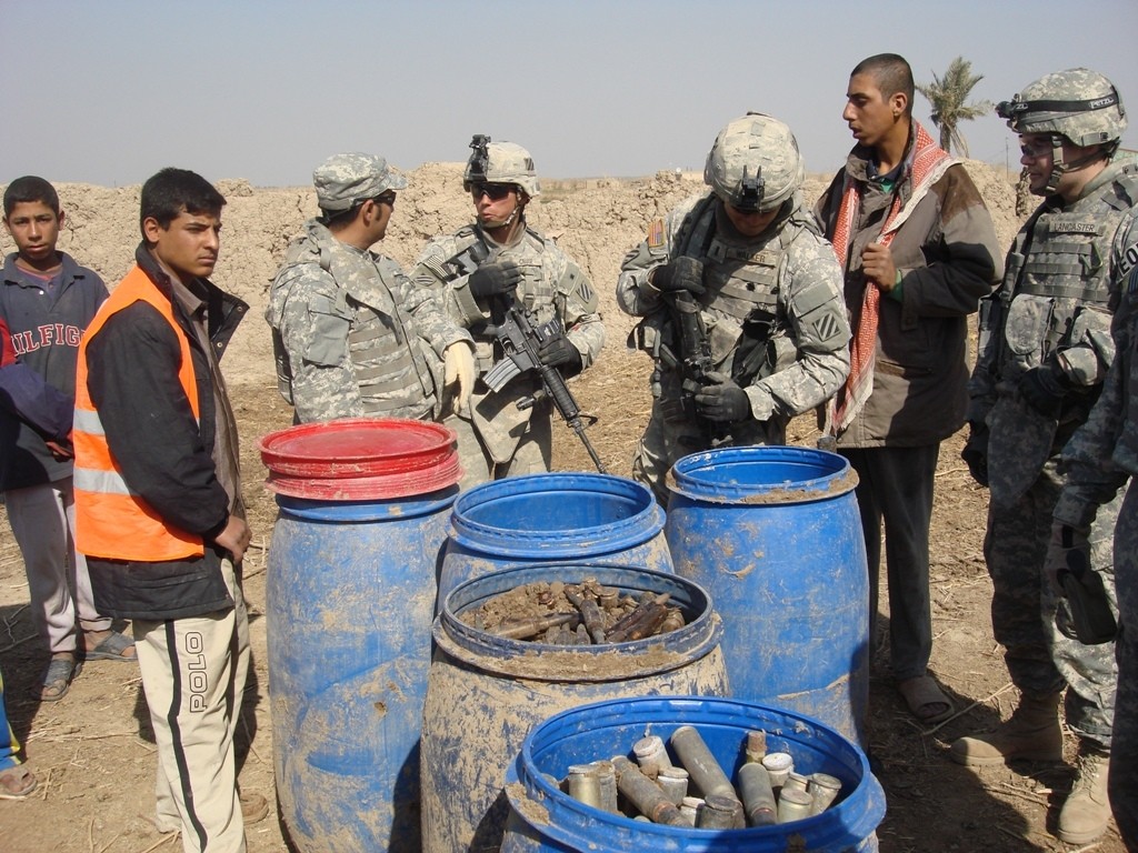 Besides providing for the safety of the community, the Iraqi man was also compensated for his find. In a show of good will, the man split the reward with the other men who helped remove the barrels and the man who loaned the tractor.