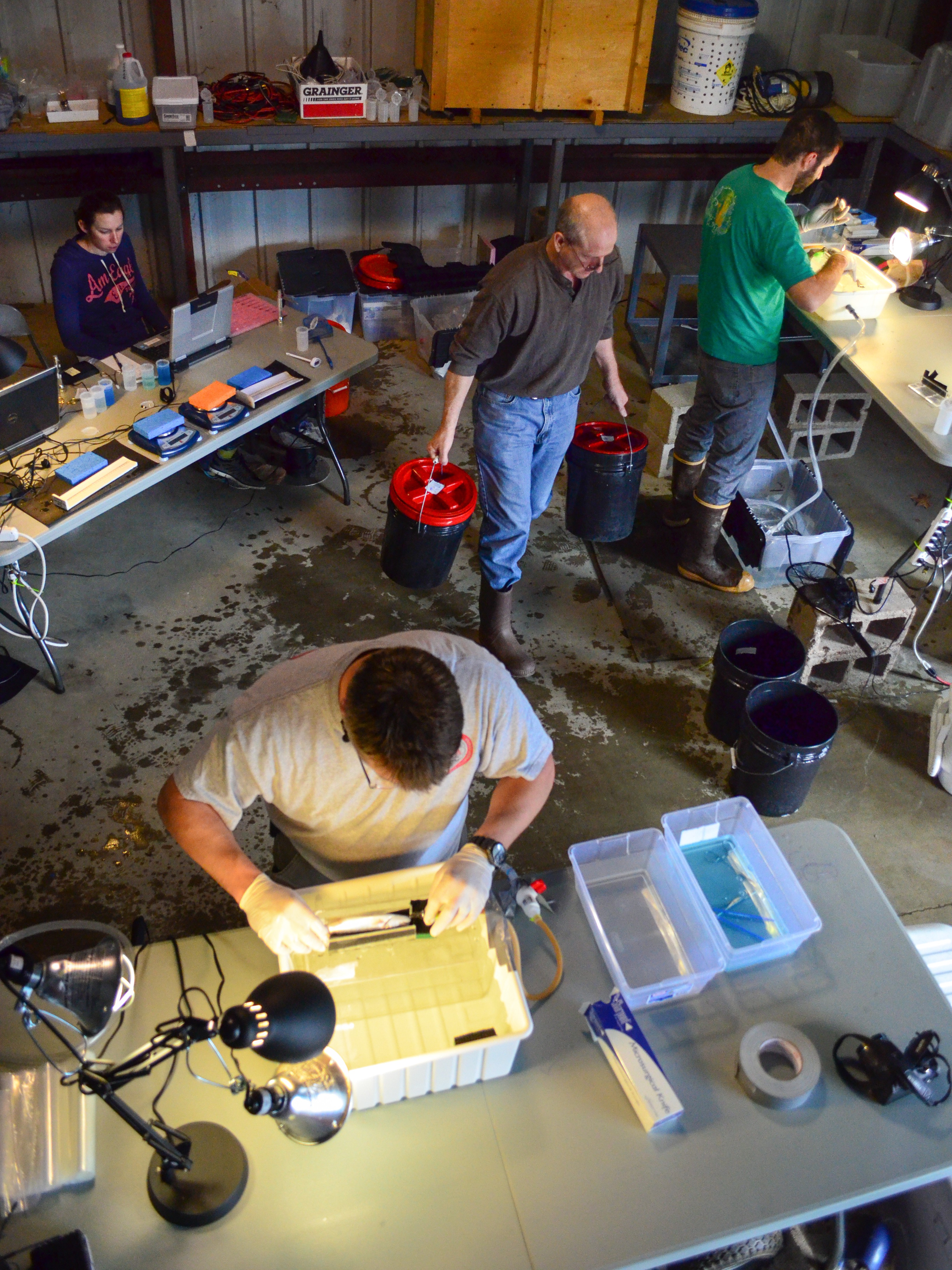 Reducing flood risk in an environmentally mindful way is what brought ecologists to the Coleman National Fish Hatchery in Anderson, Calif., March 25-27, 2013 to surgically implant electronic tracking devices into hundreds of live fish to study their behavior.