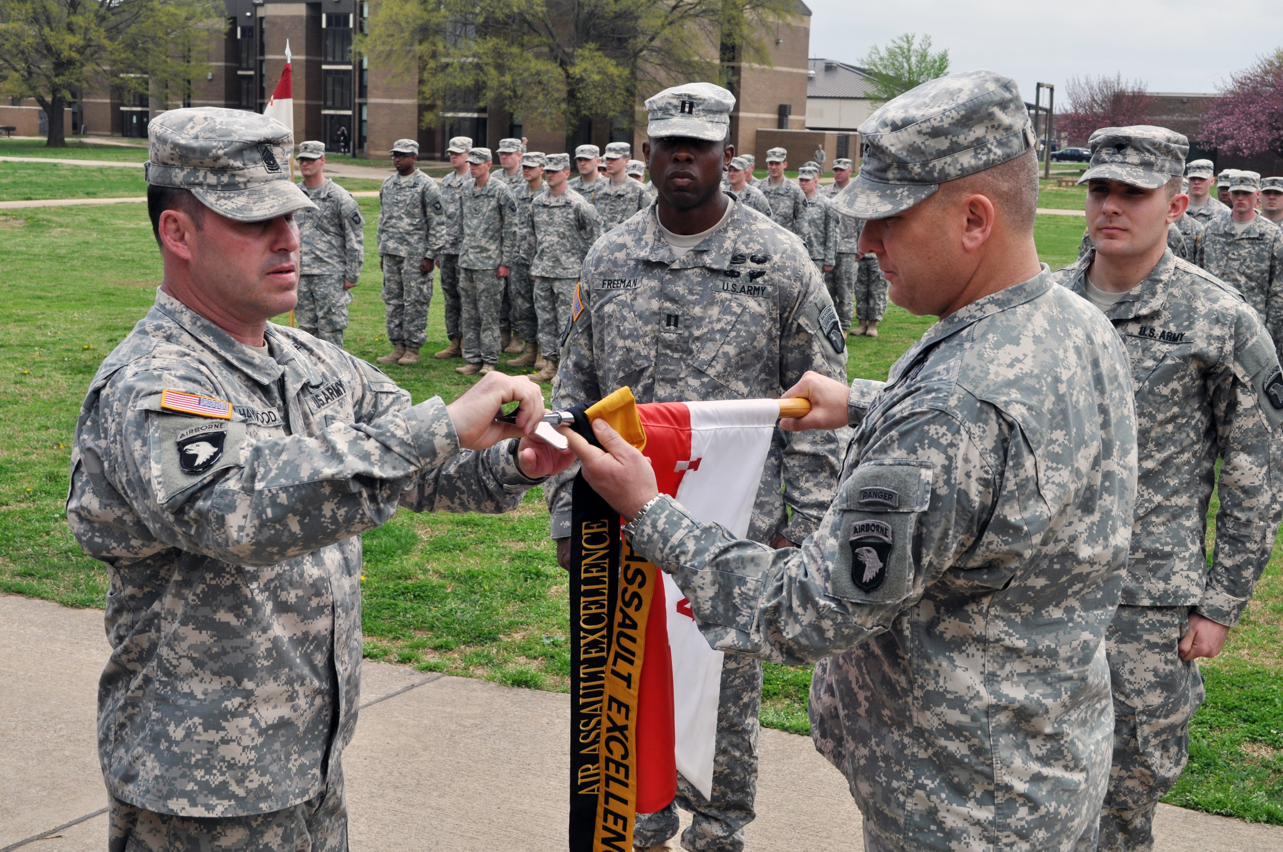 Troop A, also known as Apache Troop, is part of the 1st Squadron, 75th Cavalry Regiment, 2nd Brigade Combat Team, 101st Airborne Division (Air Assault) and was awarded the Gold Air Assault Excellence Streamer during a ceremony held at Fort Campbell's Strike Field, April 16. The streamer signifies the troop is now at or above 90 percent Air Assault qualified.