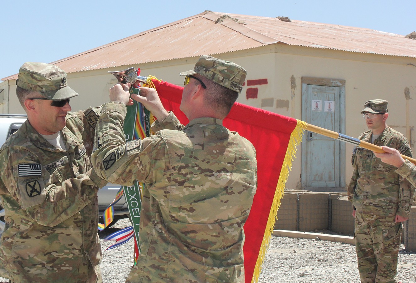 PAKTIKA PROVINCE, Afghanistan -- Col. Dennis S. Sullivan and Command Sgt. Maj. Hector J. Font, 2nd Security Forces Assistance Brigade command team, presented the 2nd Battalion, 15th Field Artillery Regiment with the Army Safety Excellence Award for having no class A or B accidents for one year.