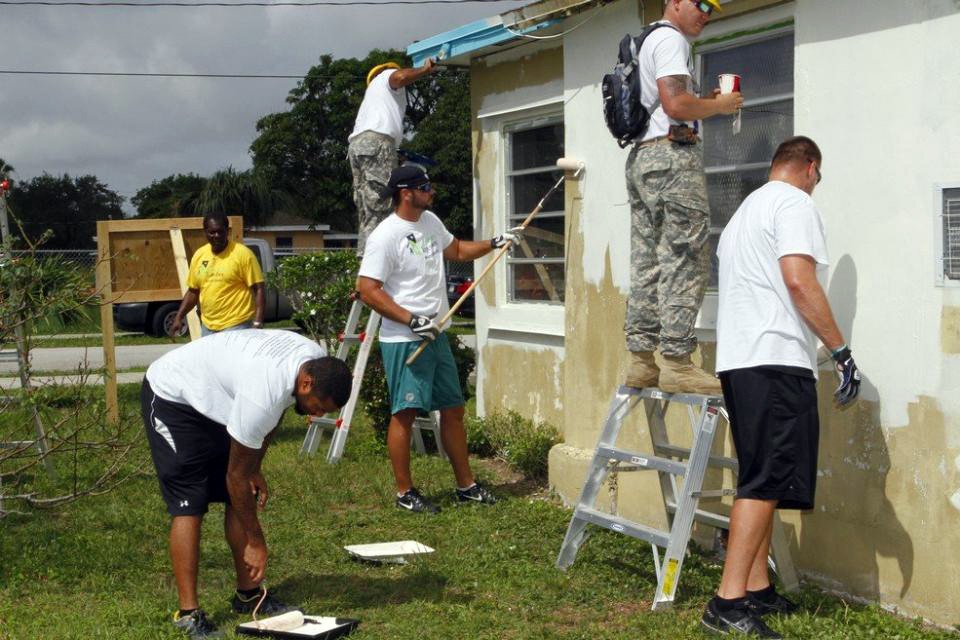 The project also brought the attention of high profile members of the Miami community. Miami Dolphins cornerback Nolan Carroll, punter Brandon Fields and offensive tackle Nate Garner worked alongside soldiers during the beginning of the project.