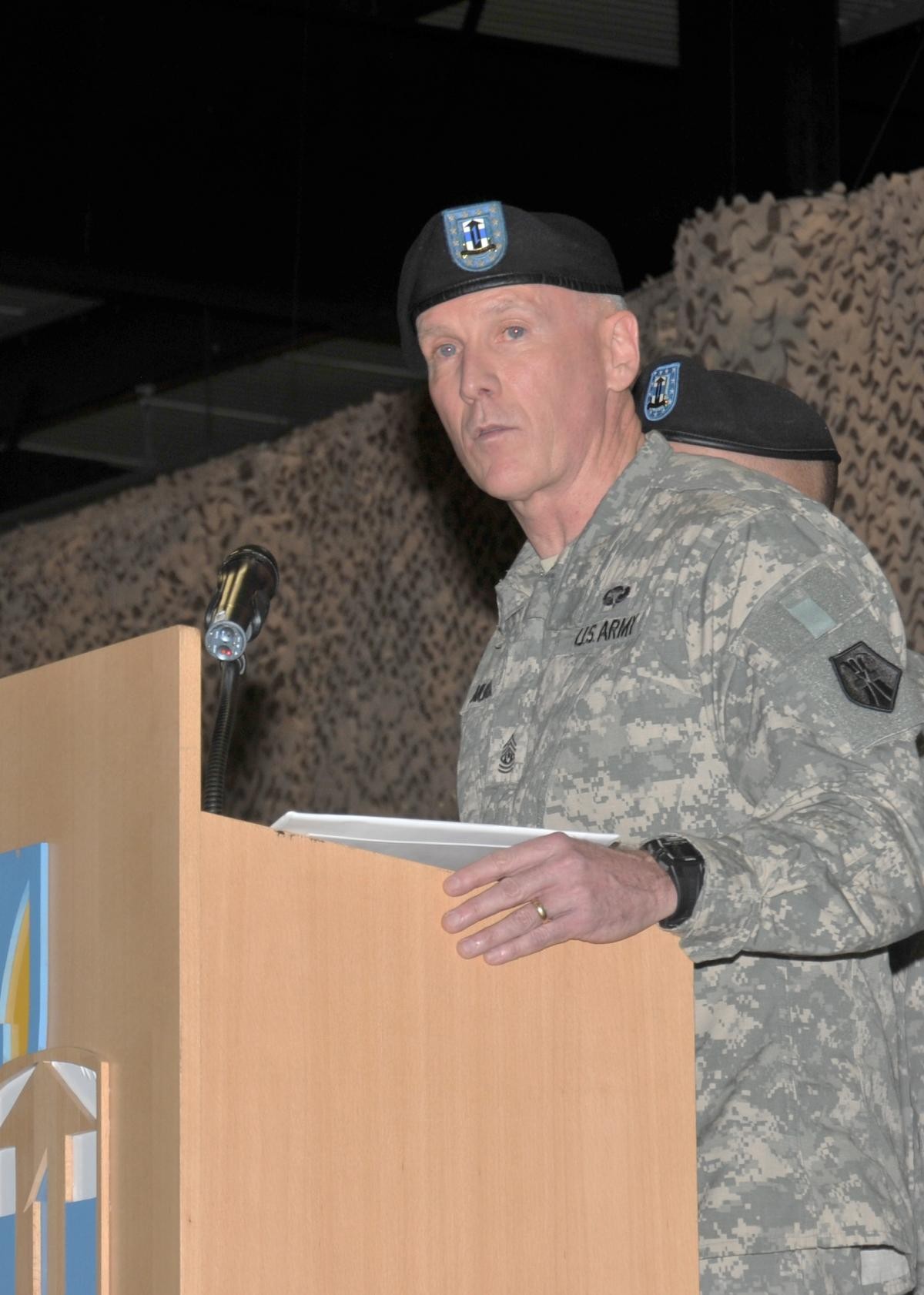 "Of the many honors I have as the commanding general, few compare to the honor of executing the change of responsibility for my senior enlisted adviser and battle buddy, the command sergeant major," said Maj. Gen. John R. O'Connor, the commanding general of the 21st TSC and the ceremony's presiding officer. "Today we transition command responsibility as the organization senior enlisted advisor from one great leader to another great leader."