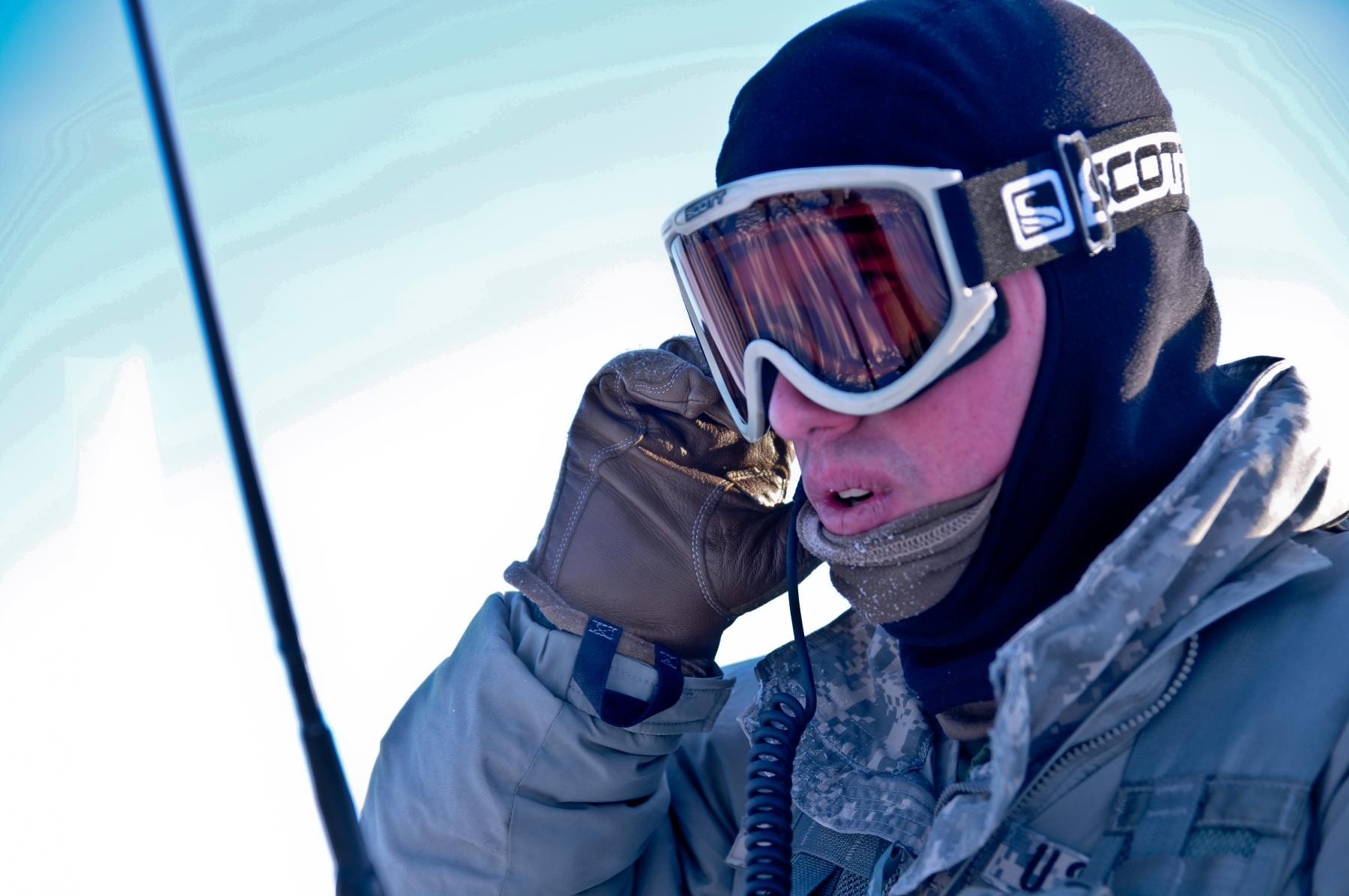 U.S. Army Capt. Timothy Cooper with 1st Squadron, 40th Cavalry Regiment, 4th Infantry Brigade Combat Team (Airborne), 25th Infantry Division, listens to radio communication as Spartan paratroopers conduct an airborne operation at Deadhorse, Alaska, F...