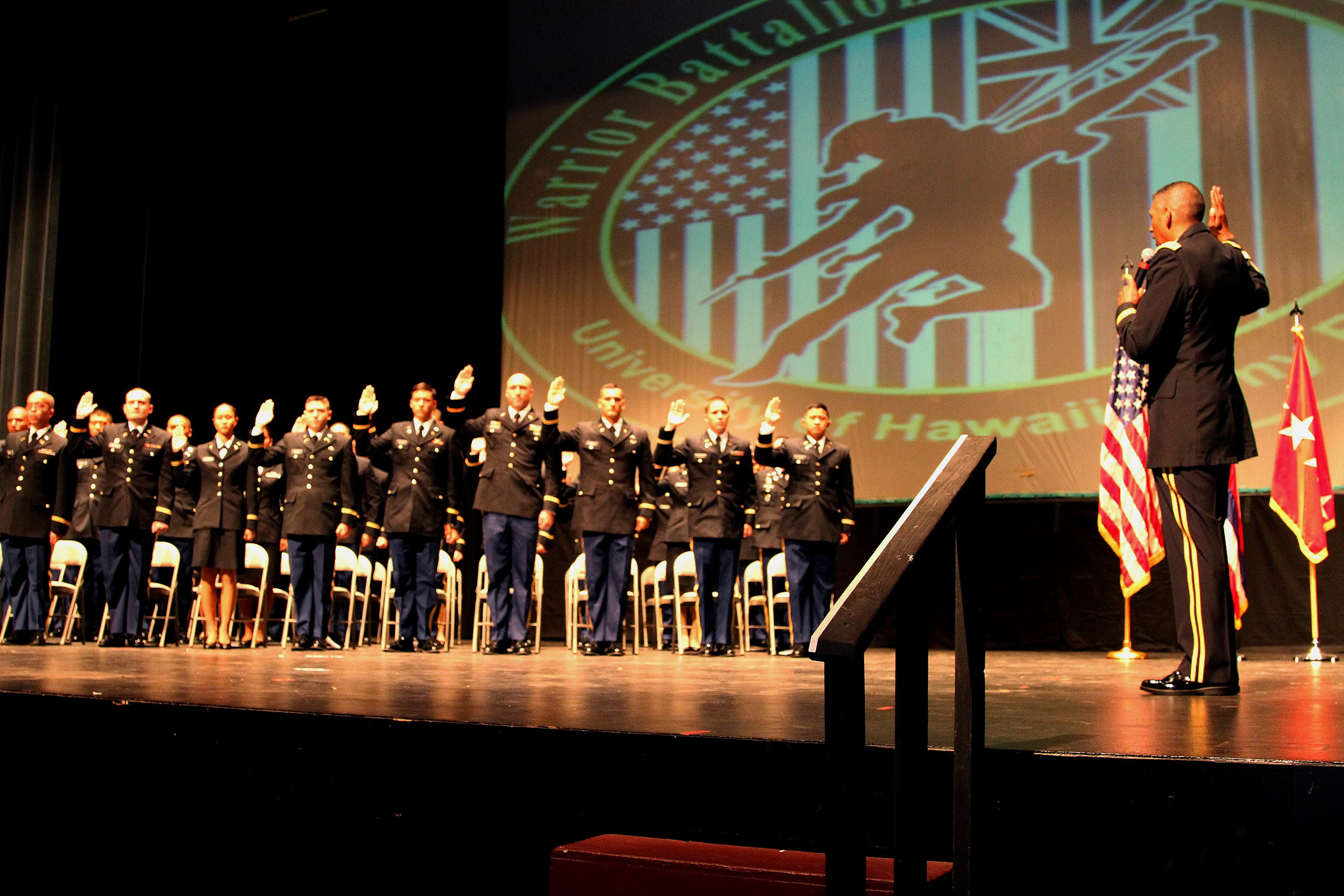 HONOLULU—General Vincent K. Brooks, U.S. Army Pacific Commanding General, swears in 30 cadets during the University of Hawaii's 104th Reserve Officer Training Corps commencement ceremony, May 19. Twenty-five of the cadets will serve in the acti...
