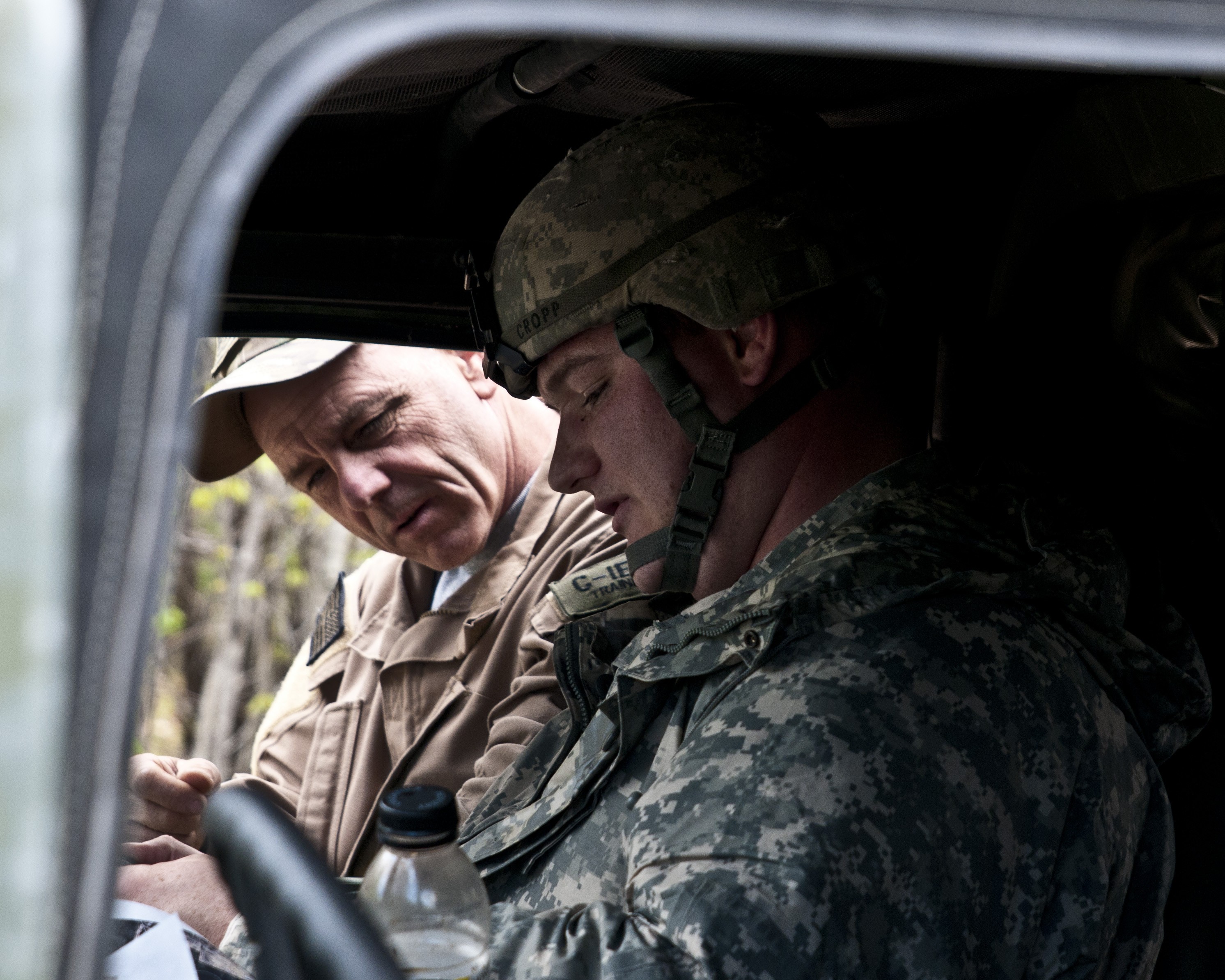 As a trainer, Urban says he provides as real an environment as possible, cleverly hiding IEDs in brush that a passerby could easily miss. Passing by these mock roadside bombs typically results in a loud bang, a puff of smoke, and Urban calling on the radio that a vehicle is disabled.