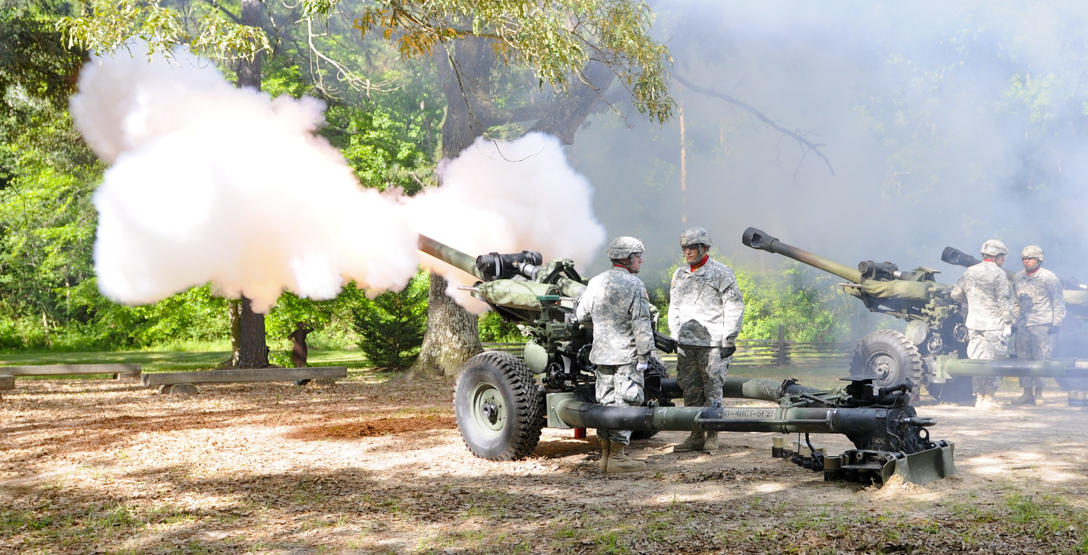 3 / 5 Show Caption + Hide Caption – FORT POLK, La. -- Battery A, 5th Battalion, 25th Field Artillery Regiment, 4th Brigade Combat Team, 10th Mountain Division fires the 21 gun salute during the Memorial Day ceremony at Fort Polk's Warrior Memorial Park on May 22, 2014. "We pause to rem... (Photo Credit: U.S. Army) VIEW ORIGINAL