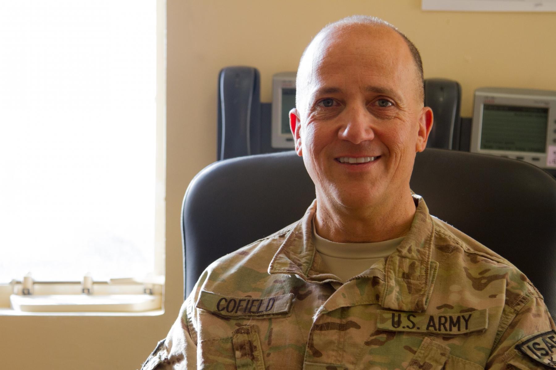 Cofield, a 57-year-old father of four from Indianapolis who currently serves as executive officer of Headquarters and Headquarters Battalion, 4th Infantry Division, Regional Command (South), and who once piloted fighter jets for the U.S. Air Force, has only been the Army for four years but carries with him a life's worth of service to family and country.