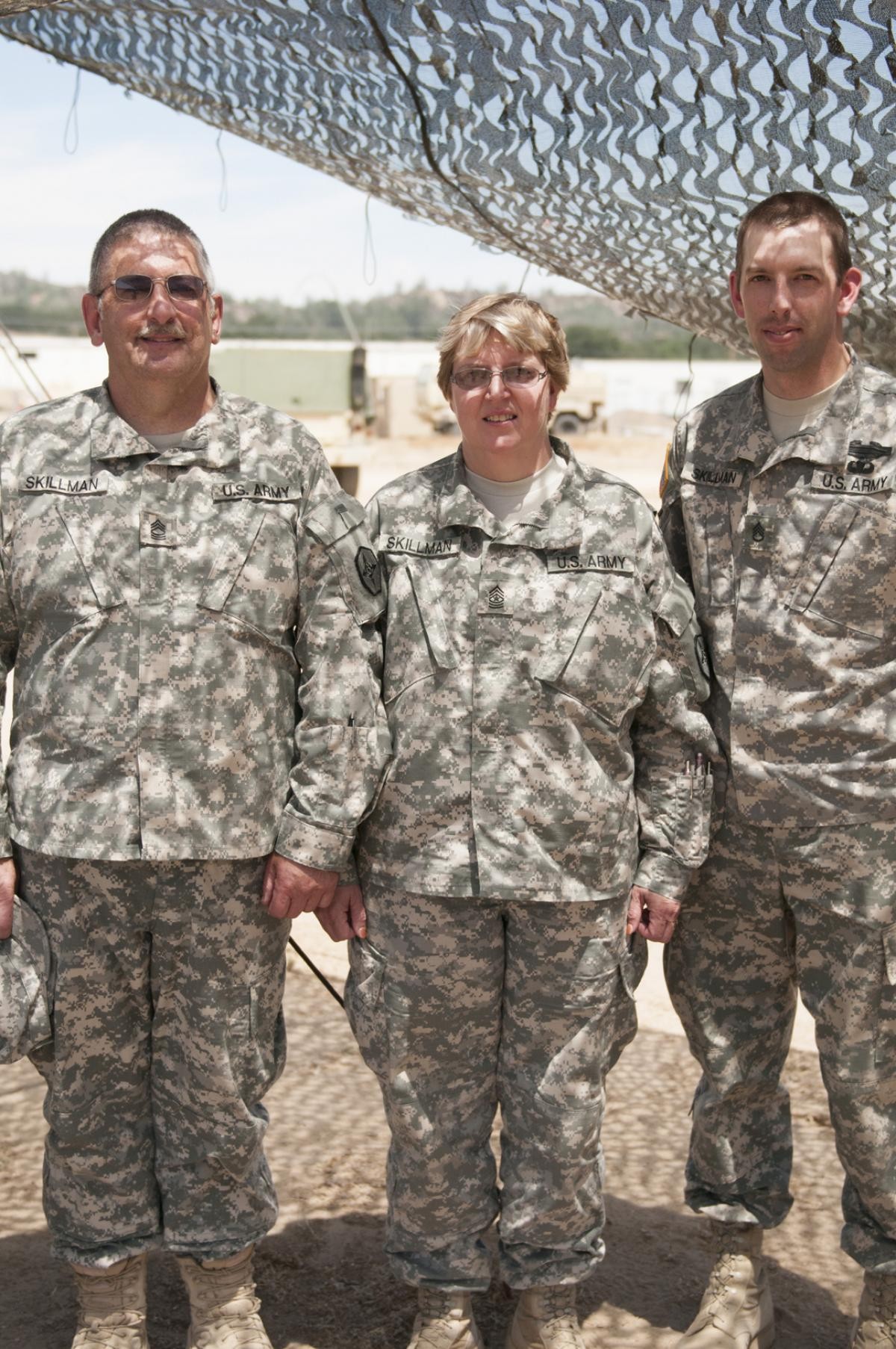 Command Sgt. Maj. Lola M. Skillman, Master Sgt. Dan L. Skillman and Staff Sgt. Jaymes Skillman are all Army Reserve Soldiers assigned of the 652nd Regional Support Group out of Helena, Montana. They deployed to Afghanistan together in 2012, and even out of uniform, the Skillmans serve the Army Reserve as civilians in Helena.