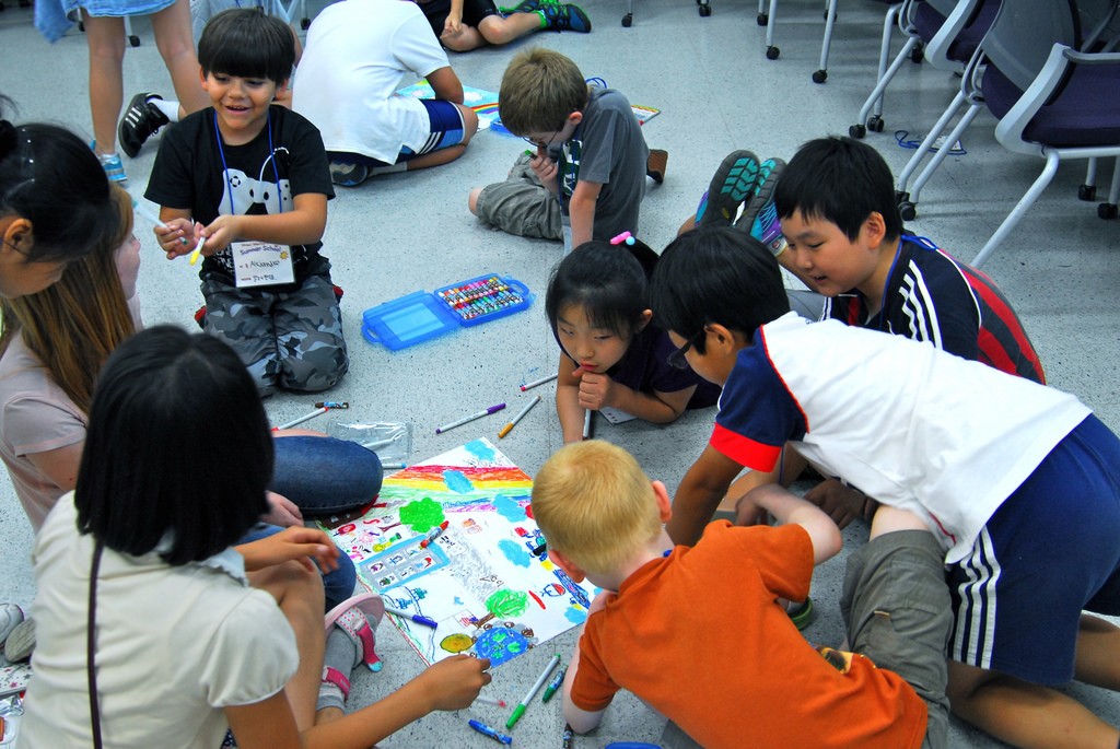 CAMP HUMPHREYS -- The fifth iteration of the Korean-American Children Joint Summer School, a free program for elementary school age children living here and at Osan Air Base -- along with about 100 Pyeongtaek-area children -- was held July 22-25, at the Paengseong International Community Center. The program is hosted by Pyeongtaek City and Gyeonggi Province and organized by the Pyeongtaek Cultural Center. Participants spent four days together, exploring both Korean and American culture. The students participated in various activities during the first three days, including traditional cultural experience classes (Korean paper-making, wood craft, natural dyeing and beads craft, pop dance class, cooking class and fan drawing/design). On the final day, after spending most of it on Camp Humphreys visiting M.P. Hill Fitness Center and eating lunch at Talon Café, the children went back to the community center for a buffet dinner party and to present some of what they learned to their parents before the graduation ceremony. -- U.S. Army photos by William Kim, Helena Kim, Kate Ko and Min Kwon