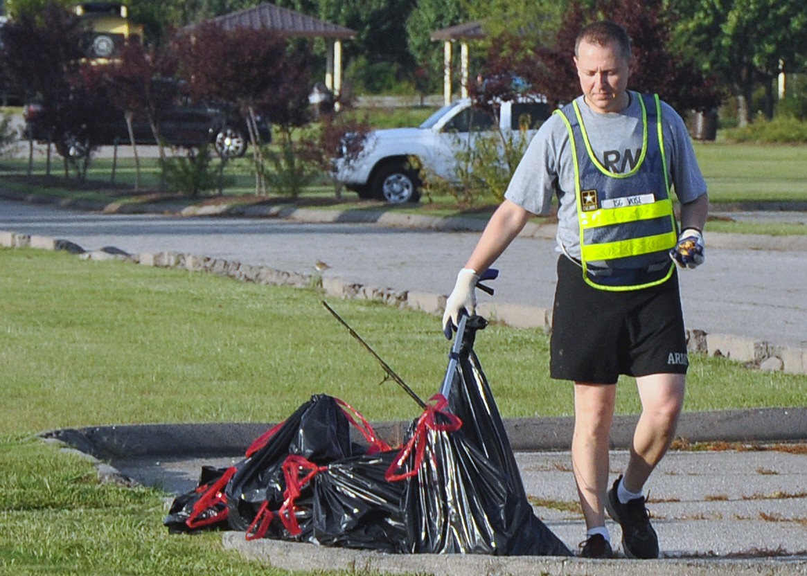 FORT JACKSON, S.C. (Aug. 21, 2014) -- Soldiers with the 4th Battalion, 10th Infantry Regiment volunteered Tuesday morning to collect trash from around some of the post's recreational areas.