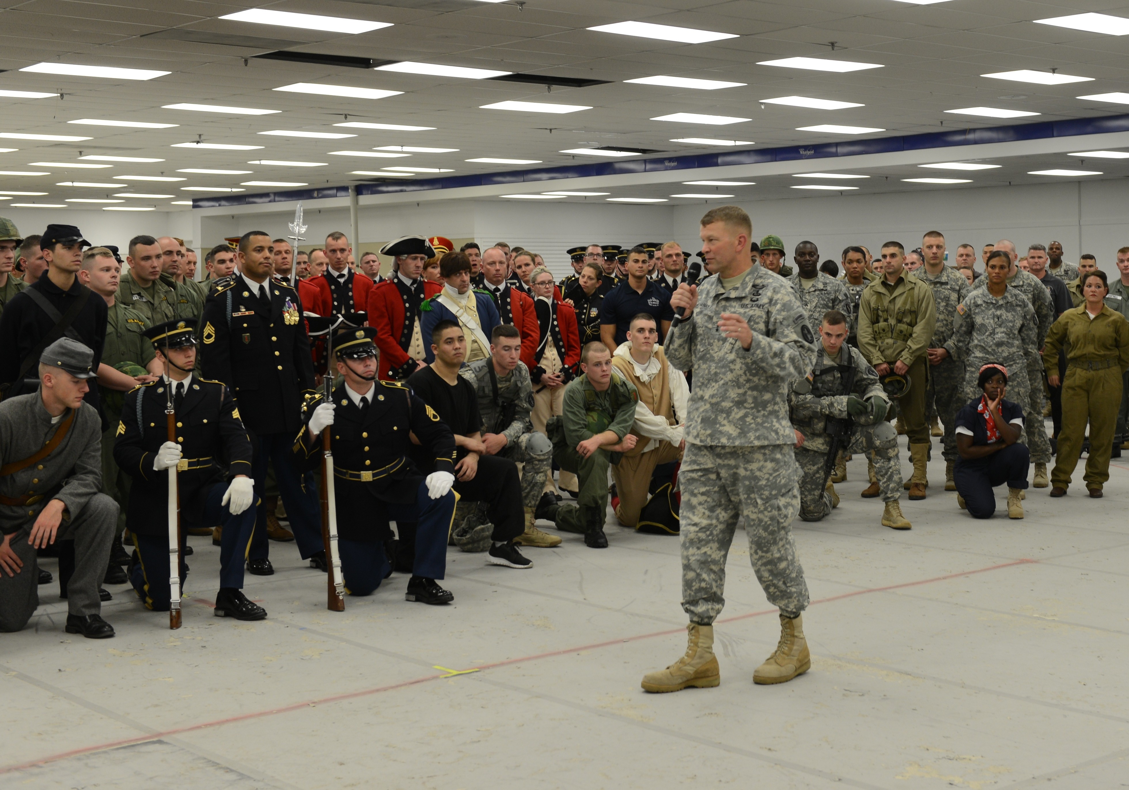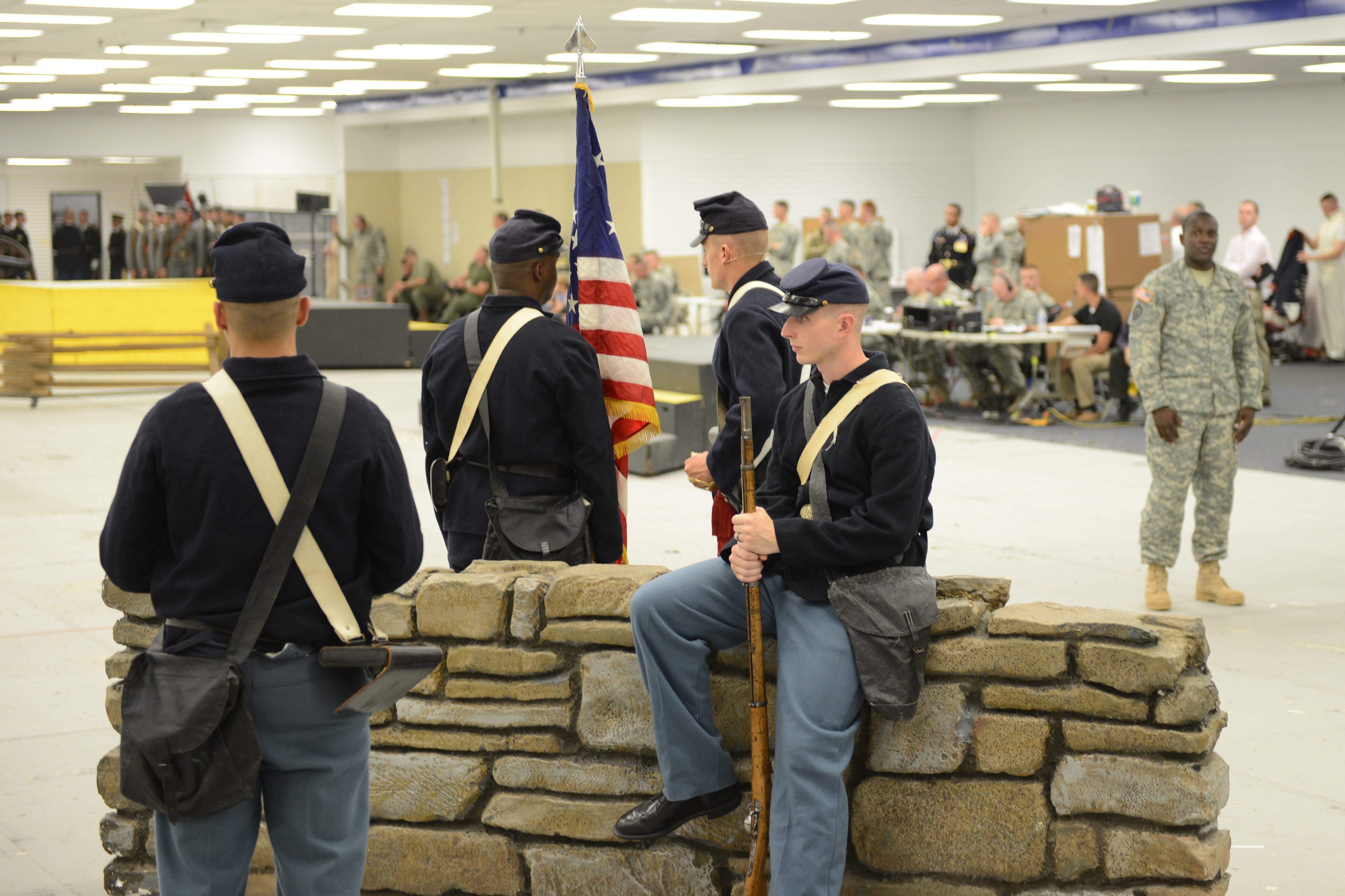 During the show, Soldiers in historical uniforms re-enact key moments in U.S. Army and American history. The re-enactments include battle scenes with short periods of simulated gunfire and performances by the Army's elite ceremonial units.