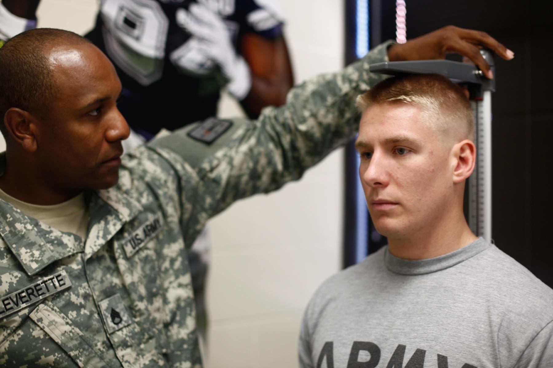 U.S. Army Sgt. Nicholis Couture starts the height, weight and tape portion of the 2014 Department of the Army Best Warrior Competition (BWC) at Fort Lee, Va., Oct. 6, 2014. The BWC is an annual Army competition that tests a Soldier's mental, physical... (Photo Credit: U.S. Army) VIEW ORIGINAL