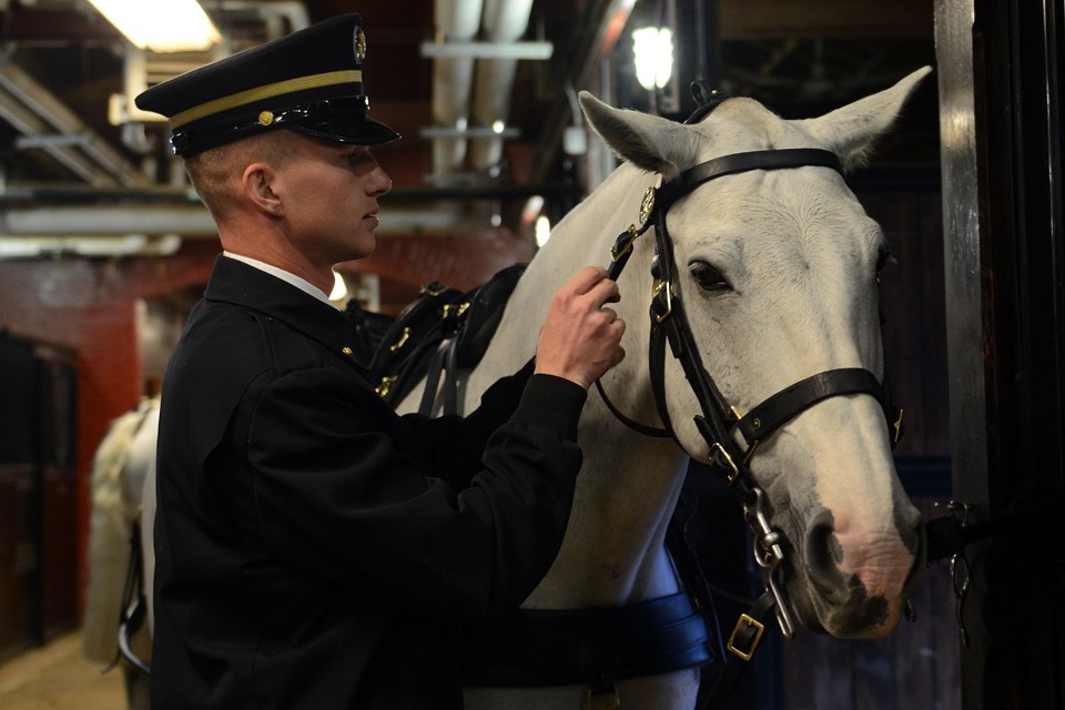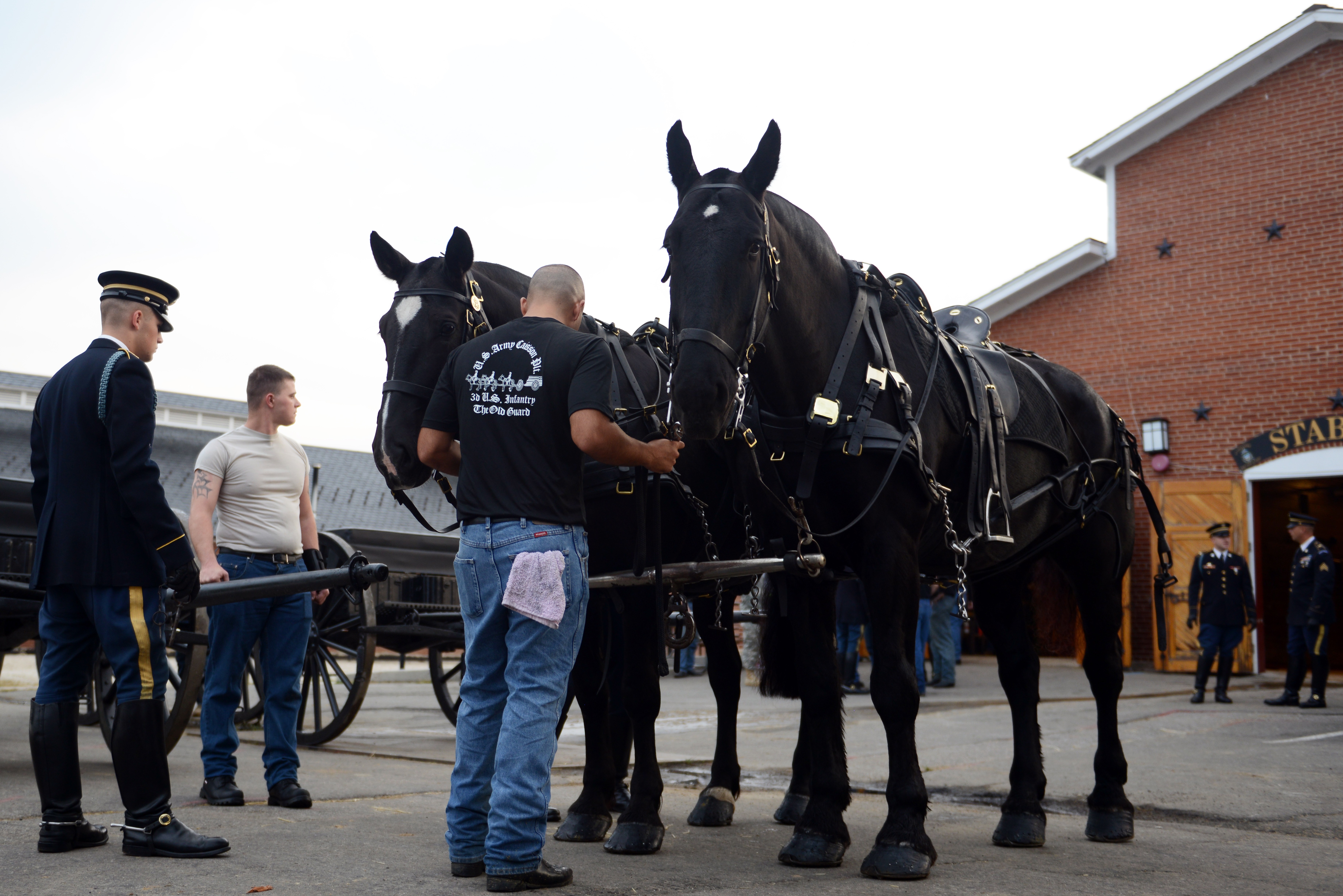 JOINT BASE MYER-HENDERSON HALL, Va. (Army News Service, Oct. 10, 2014) -- Before the sun peeks over the horizon, the Soldiers of the 3d U.S. Infantry Regiment (The Old Guard), are already hard at work preparing the caisson horses for the day's solemn duties.