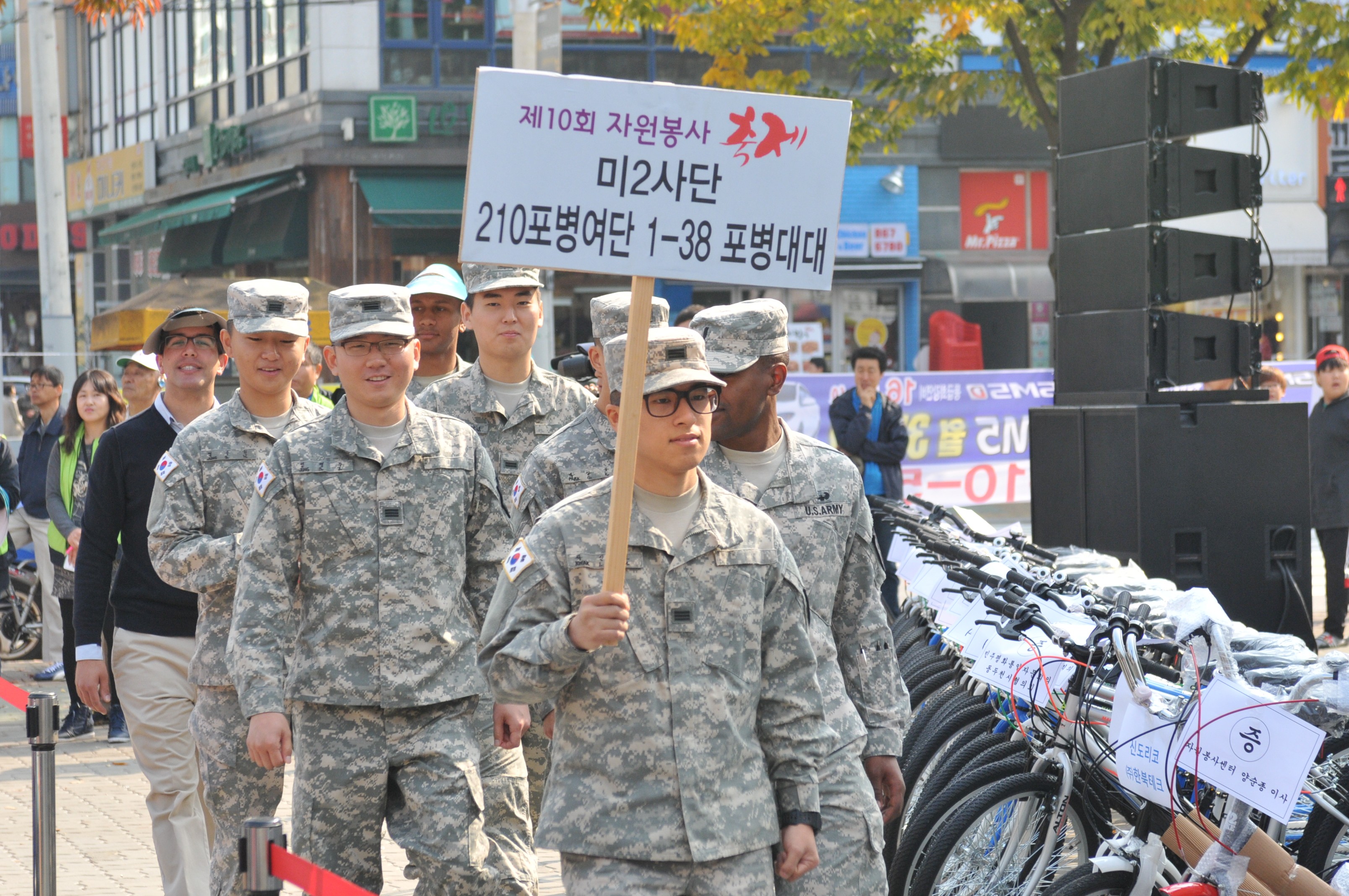 Soldiers from the 1st Battalion, 38th Field Artillery Regiment, 210th Field Artillery Brigade, 2nd Infantry Division, joined fellow local volunteers and community members for the 10th Annual Dongducheon Volunteer Festival as a part of the Good Neighbor program October 18, 2014.