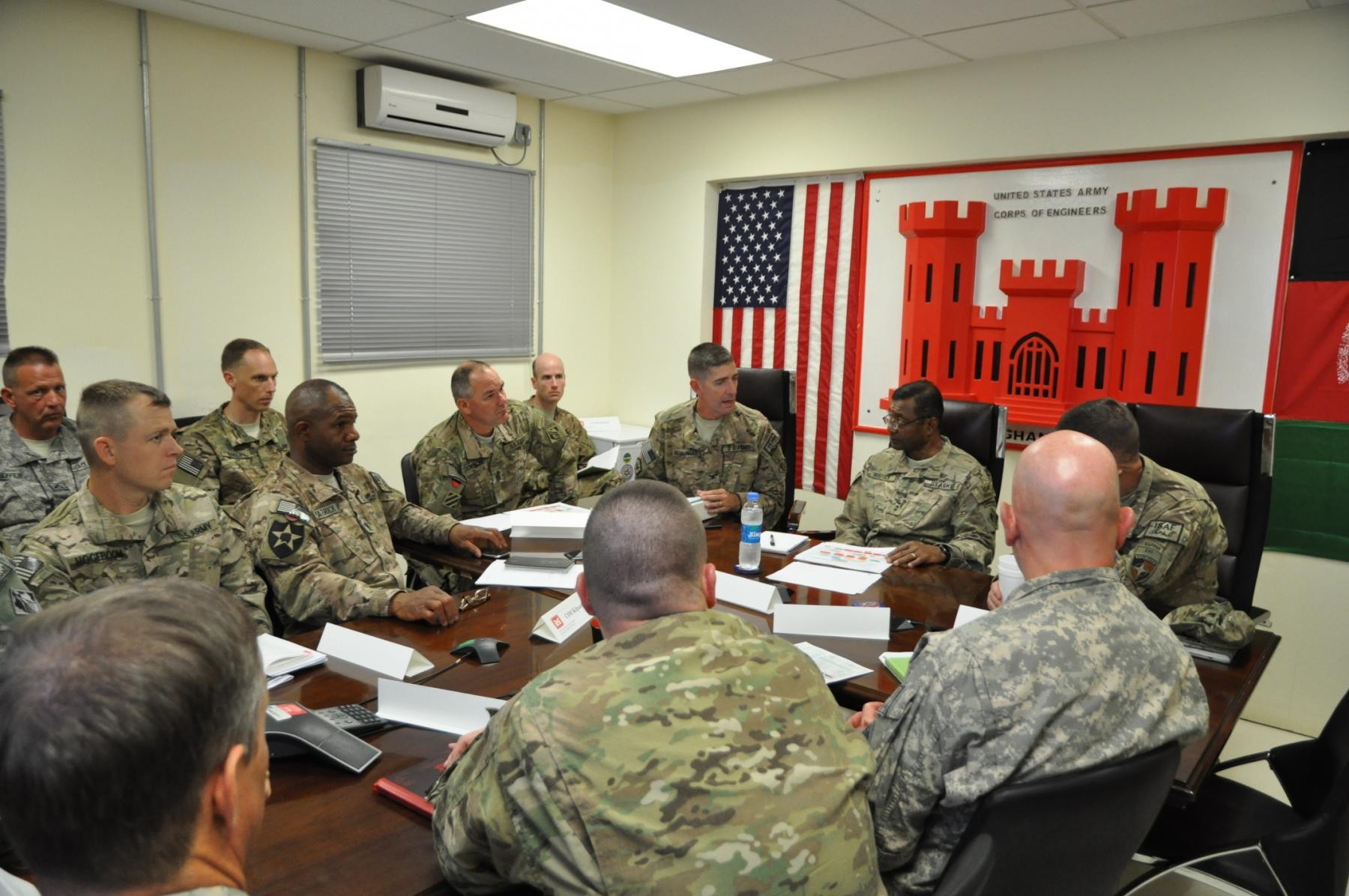 He attended several one-on-one meeting with senior leaders to assure them of his priority to provide necessary engineer support to meet the mission requirements. He also learned about the developing long-term strategic plan that leverages the entire engineer regiment to fill gaps in the Afghan National Security Forces development and infrastructure sustainment.