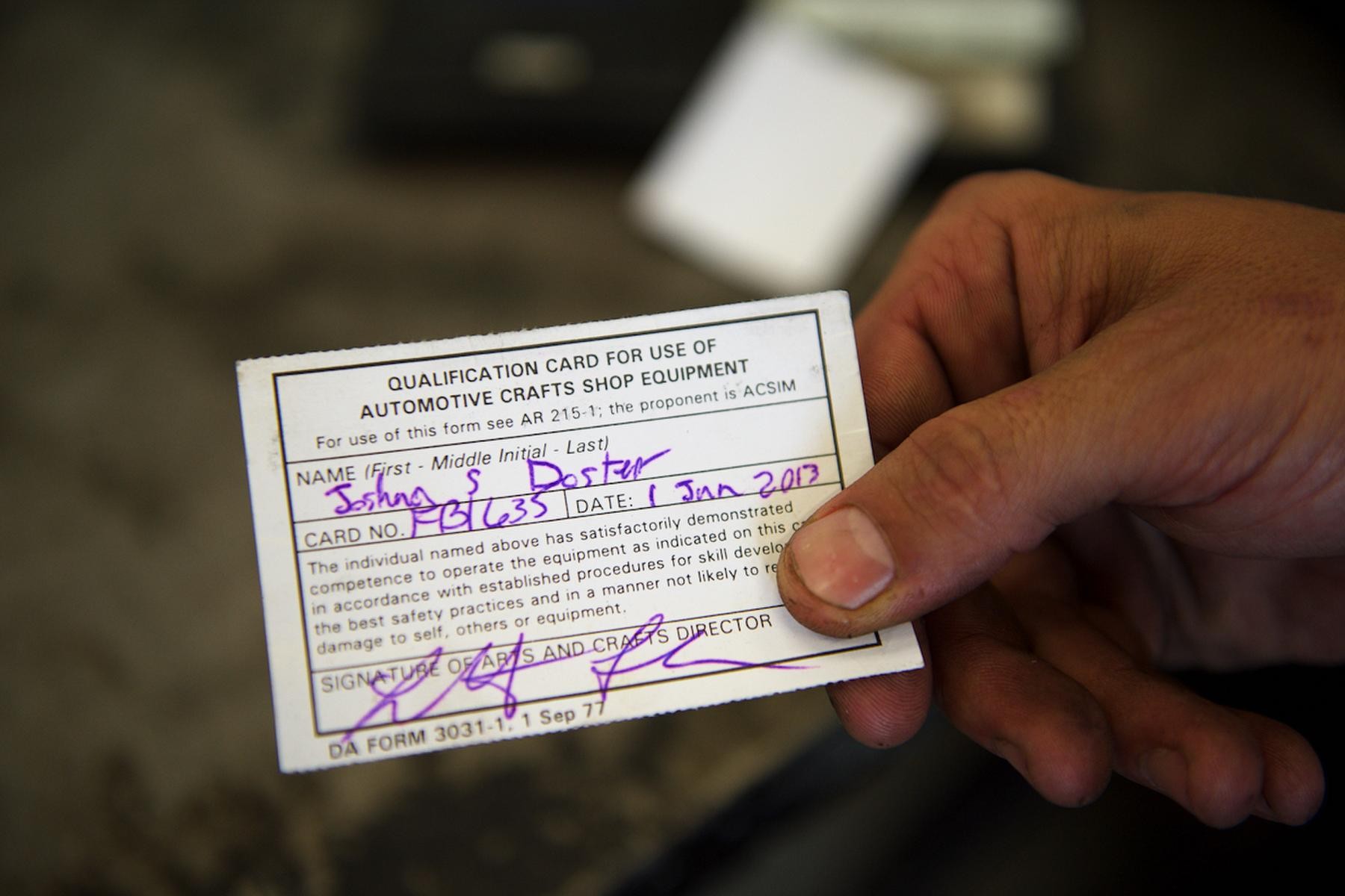 "As a single Soldier, bills and the little things begin to add up," said Doster, a Phenix City, Ala., native. "Having access to this facility and equipment makes something like maintenance and unexpected auto repairs easier to deal with."