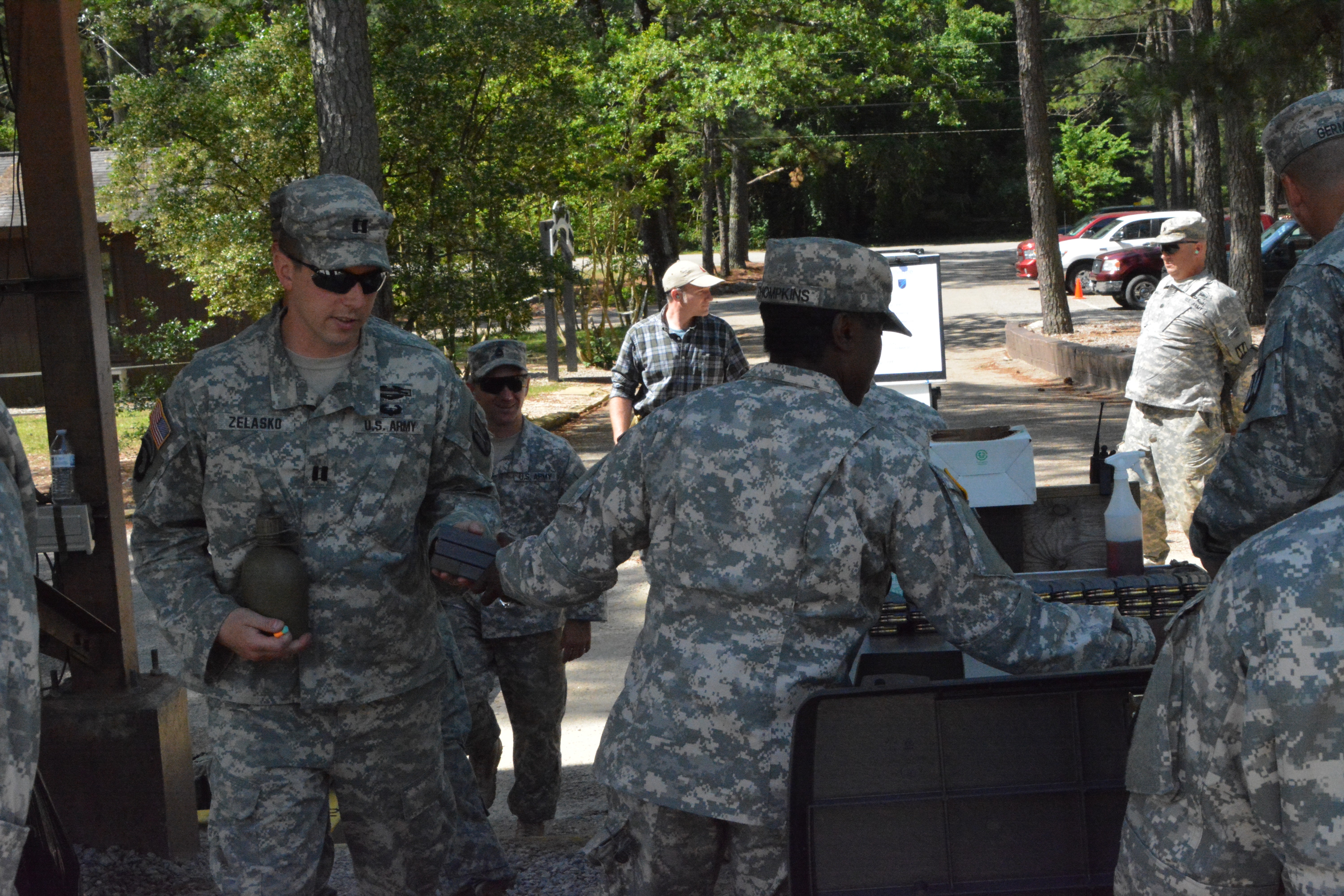 3 / 4 Show Caption + Hide Caption – Sgt. 1st Class Taterrian Thompkins hands ammunition to Capt. Matthew Zelasco during the marksmanship portion of last week's Lightning Challenge. 'We had to work on planning and coordination,' Thompkins said. 'We worked together as a team and it reall... (Photo Credit: U.S. Army) VIEW ORIGINAL
