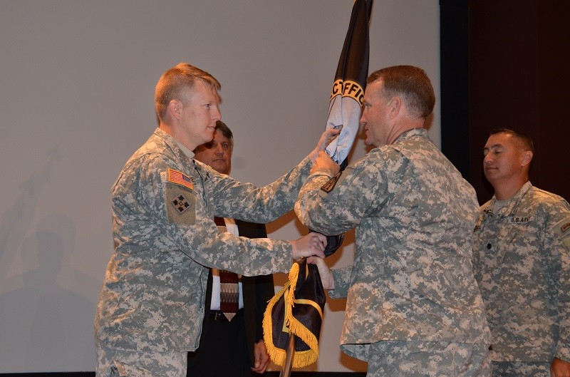 Lt. Col. Roger Kuykendall relinquished responsibility of CE to Lt. Col. Curtis Kuetemeyer who most recently served as a procurement specialist for the Army Contracting Command at Rock Island Arsenal, Illinois.
