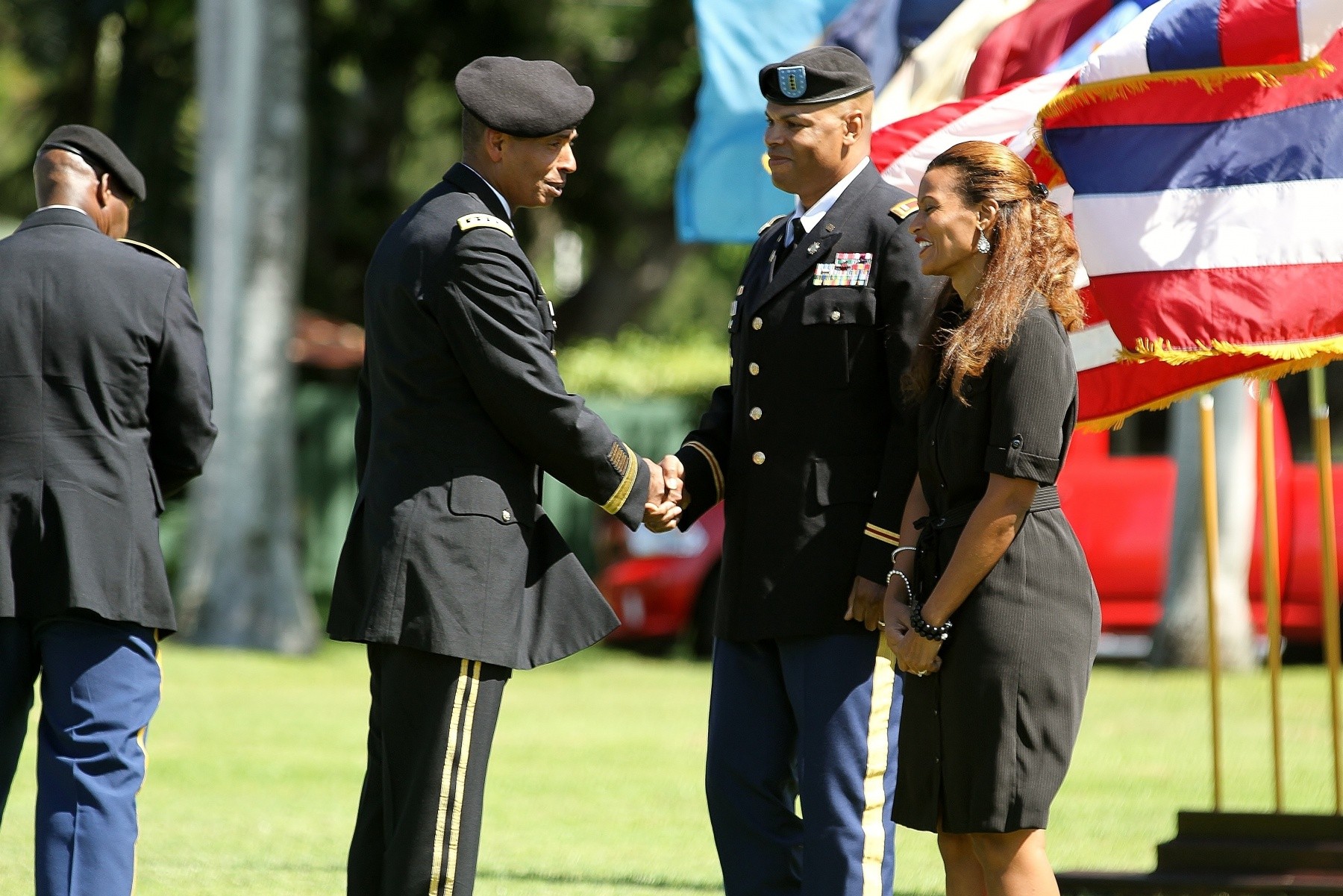 The five retirees honored were Maj. Wendell G. Richards Jr., of Shelbyville, Ind.; Maj. Junjie J. Inocencio, of Aiea, Hawaii; Chief Warrant Officer 4 Solomon A. Moody, of Honolulu, Hawaii; Sgt. Maj. Leslie E. Frye II, of Newport Beach, Calif.; and Sgt. 1st Class Michael W. Angel Sr., of Trenton, Mich.