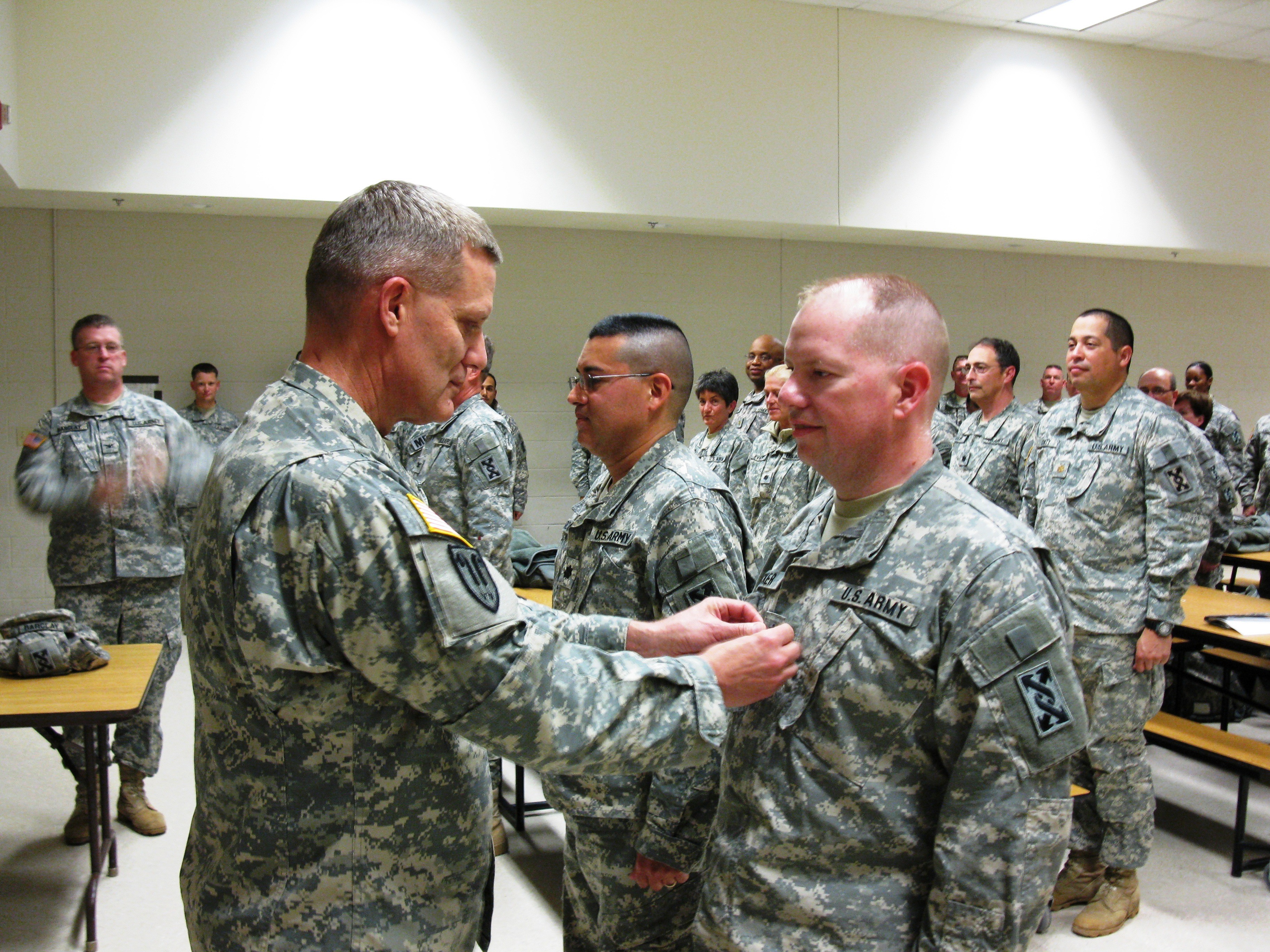 The 143d Expeditionary Sustainment Command is preparing for deployment to Afghanistan in support of the movement more than 20,000 service members there. Brig. Gen. Daniel I. Schultz, commanding general, takes time to formalize the promotion of Abraha...
