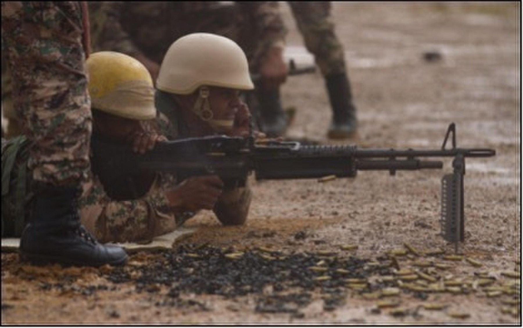 The last week of the weapons training gave U.S. Soldiers and the Jordanian Border Guard the opportunity to train together with the M240 and M60 machine guns. The Soldiers practiced disassembly and reassembly of the weapons and how to properly engage targets with them.