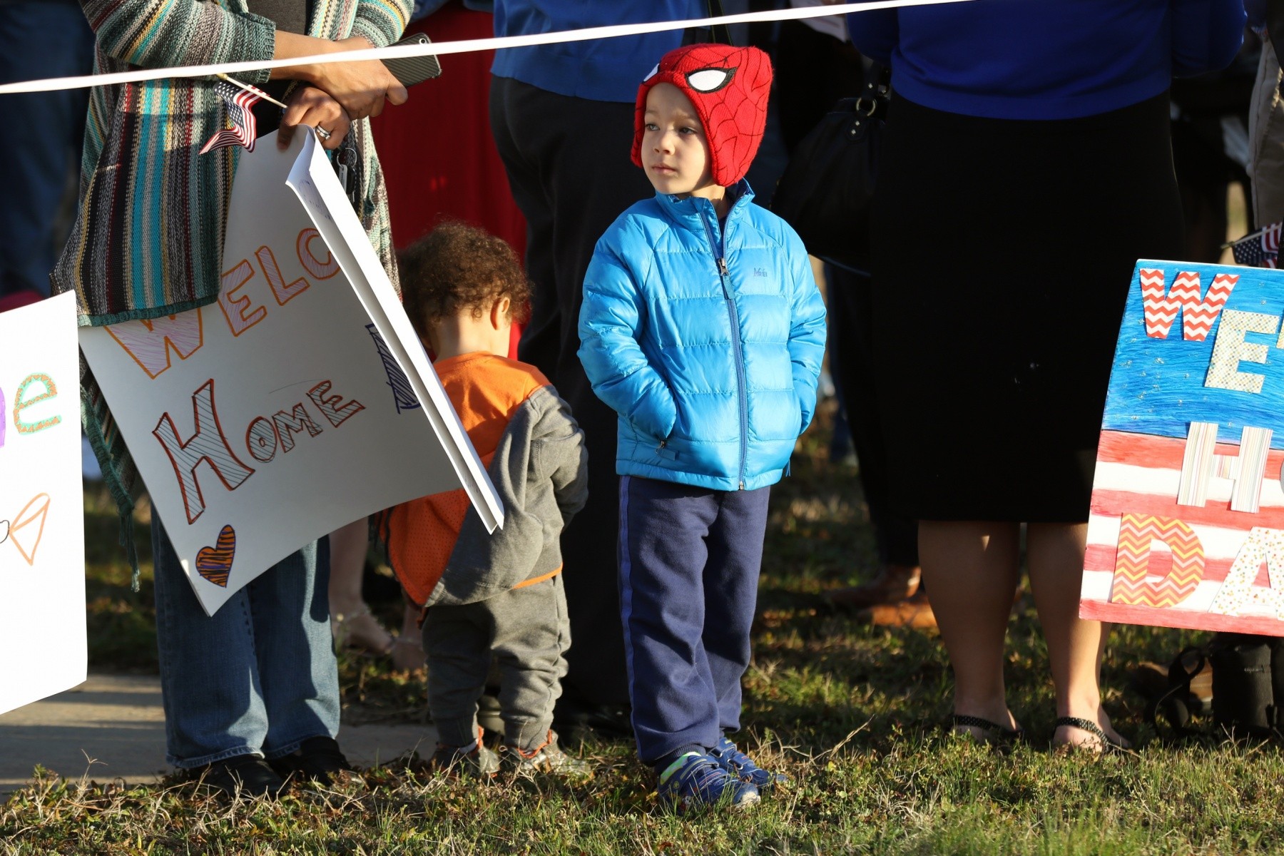 Family members welcome home Paratroopers assigned to Headquarters and Headquarters Battalion, 82nd Airborne Division, returning from a nine-month deployment in support of Combined Joint Task Force- Operation Inherent Resolve at Green Ramp on Fort Bra...
