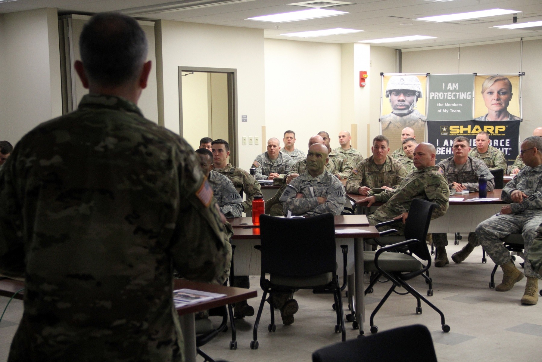 Leaders, SHARP representatives and victim advocates of 2nd Infantry Brigade Combat Team, 3rd Infantry Division attended the briefing to discuss the strategic importance of the SHARP program March 9 at Fort Stewart, Georgia.