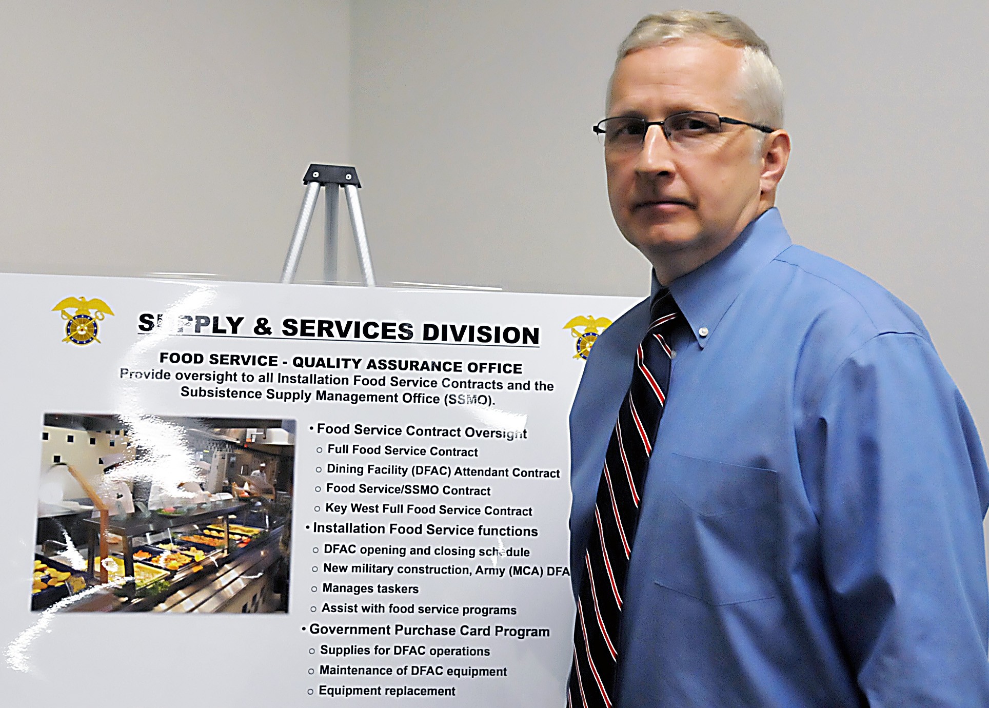 James Ramey is the food program manager under the Logistic Readiness Center at Fort Bragg, North Carolina. The Food Service-Quality Assurance Office falls under the LRC's Supply and Services Division. Ramey has been in his current position for six years. Before that, he was a food service contractor working as a theater food manager in Afghanistan, with frequent visits to Iraq. He is also a retired chief warrant officer three with nearly 21 years of service. His last tour as a Soldier was at Fort Bragg. His office provides oversight to installation food service contracts and the Subsistence Supply Management Office. This translates into supporting 14 dining facilities -- 10 military operated, four contracted -- feeding 3.4 million customers annually. "We really encourage interaction with the dining facility management and the customers," Ramey said. "That's a good way to get feedback from the customers and find out what they want to see on the menus."