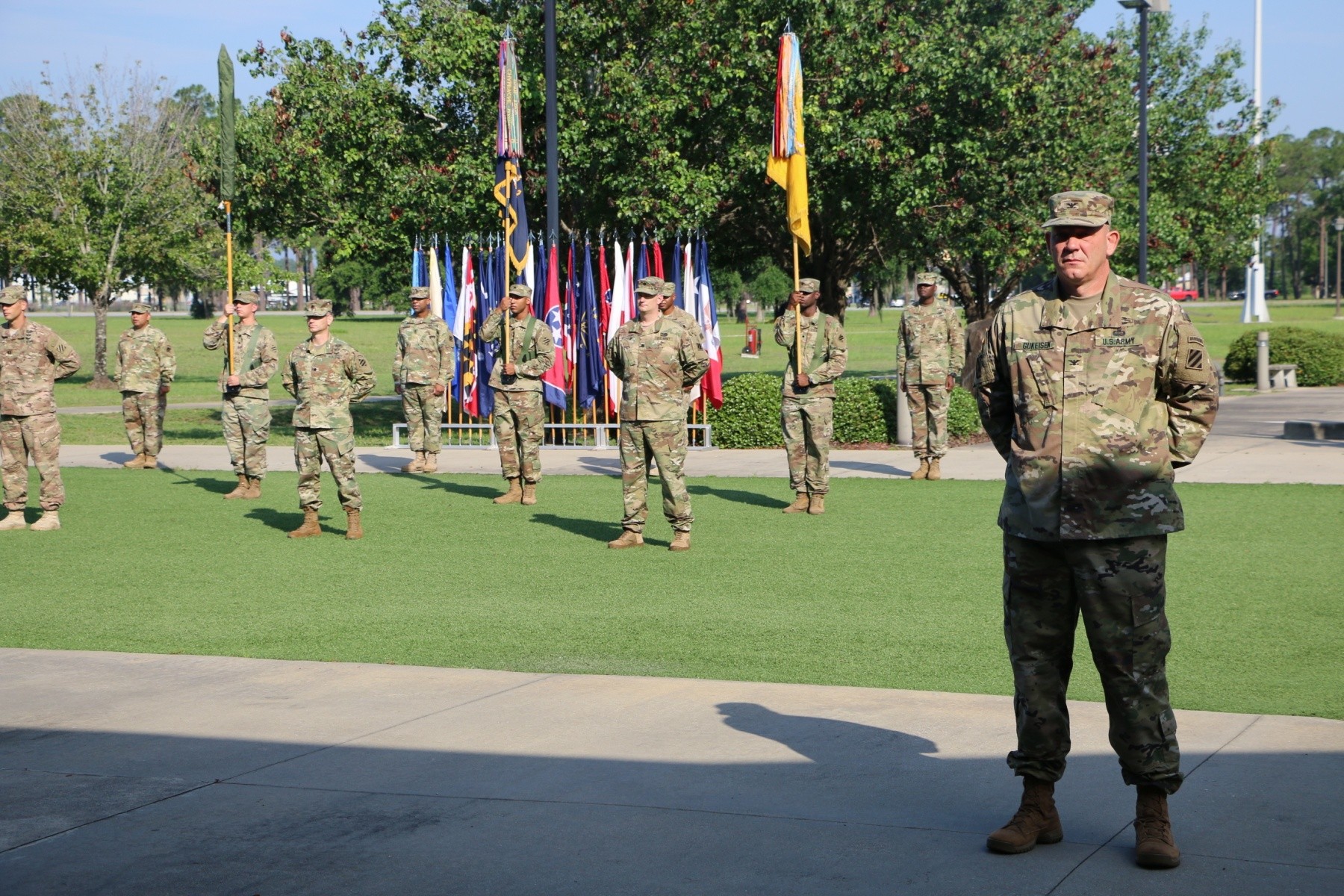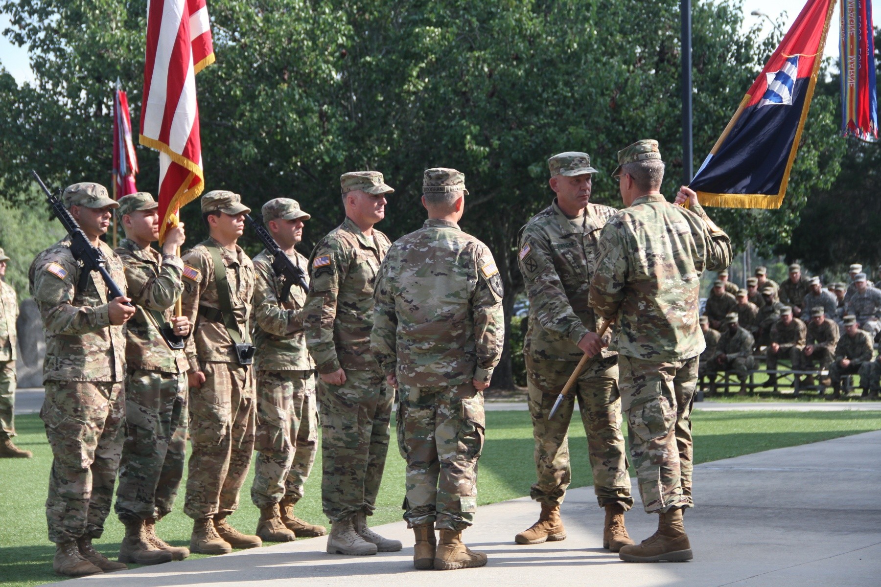 FORT STEWART, Ga. (June 10, 2016) - Col. Thomas Gukeisen, outgoing commander for 2nd Infantry Brigade Combat Team, 3rd Infantry Division, transferred command to Col. James Dooghan in a ceremony at Marne Gardens on Fort Stewart, Georgia, June 10.