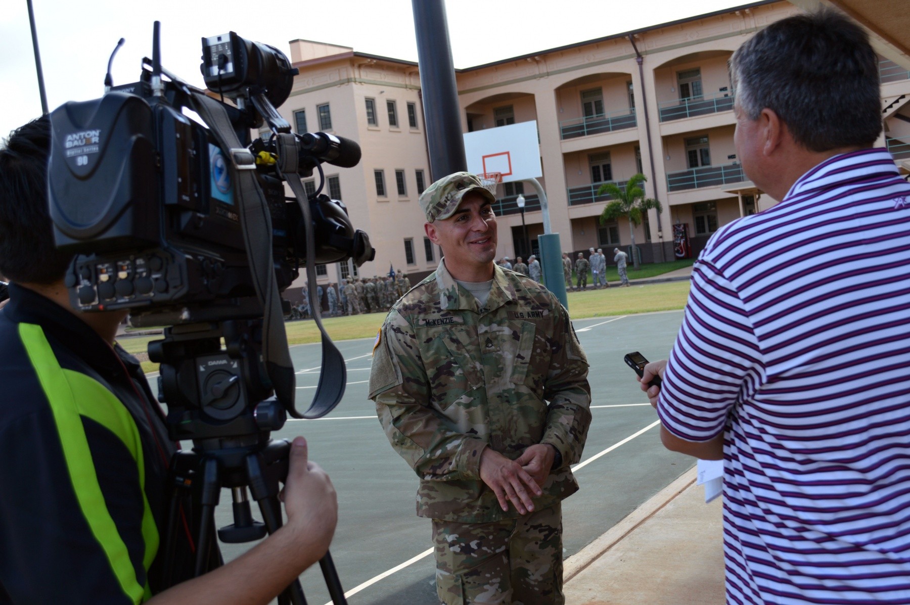 SCHOFIELD BARRACKS, Hawaii - Still showing battle damage, a helmet that saved Staff Sgt. Joseph McKenzie's life during a firefight in Afghanistan was returned to him at a ceremony at Quad D, here, Oct. 27.