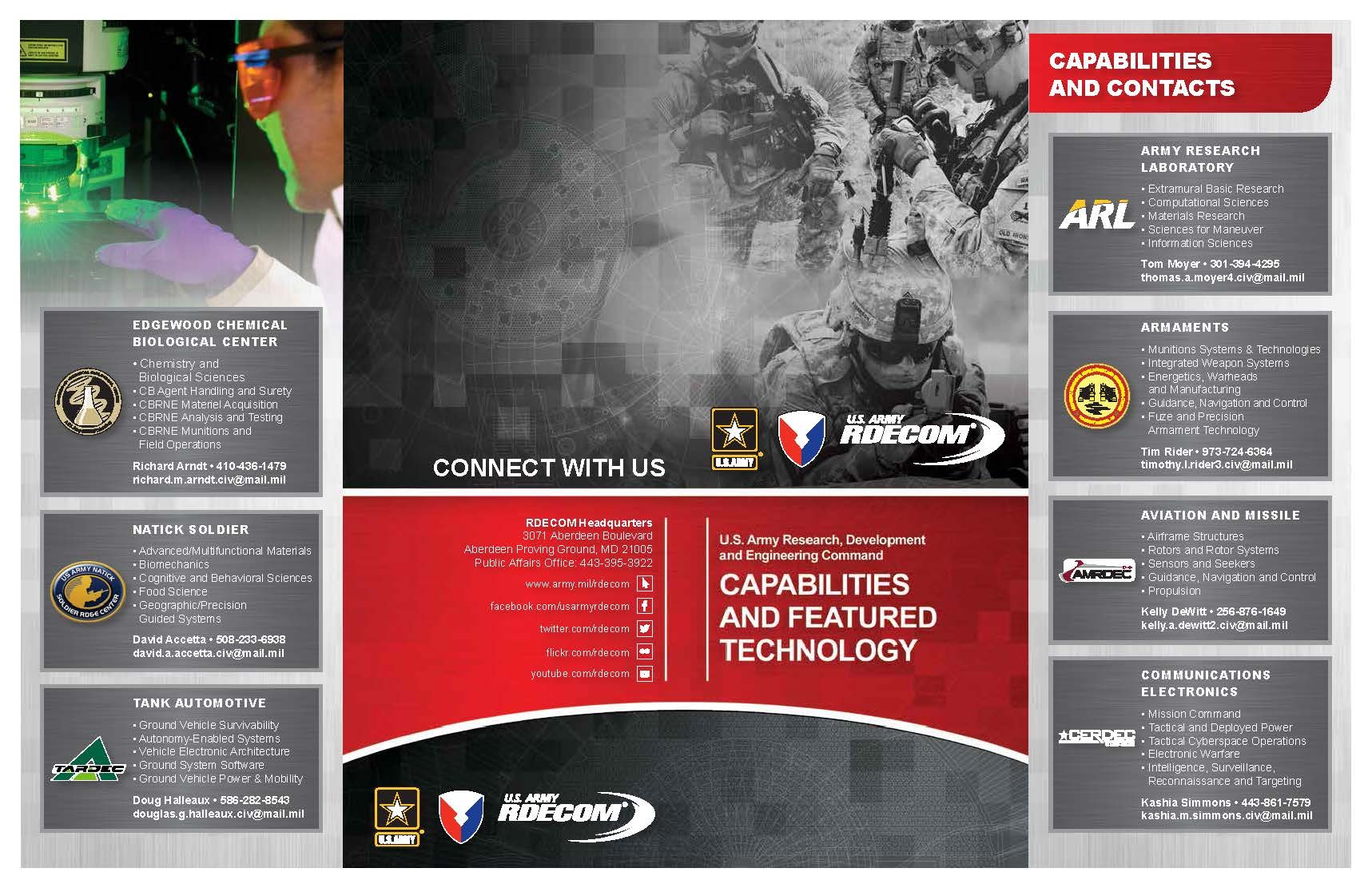 The U.S. Army Research, Development and Engineering Command, known as RDECOM, has the mission to provide innovative research, development and engineering to produce capabilities that provide decisive overmatch to the Army against the complexities of the current and future operating environments in support of the joint warfighter and the nation.