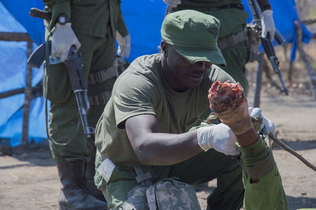 To combat the threat, Tanzania's park and game reserve rangers have teamed with members of the U.S. Army's 403rd Civil Affairs Battalion, a component of Combined Joint Task Force-Horn of Africa, and North Carolina National Guard, to conduct anti-poaching training from July to September 2016, at Rungwa Game Reserve, Tanzania.