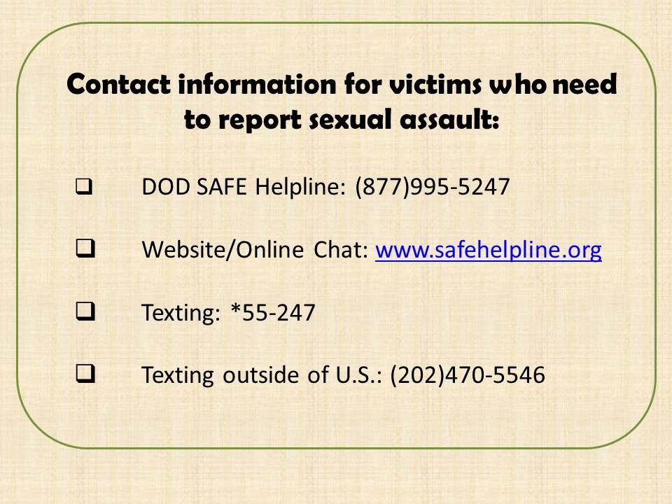 *Contact information for victims who need to report sexual assault: