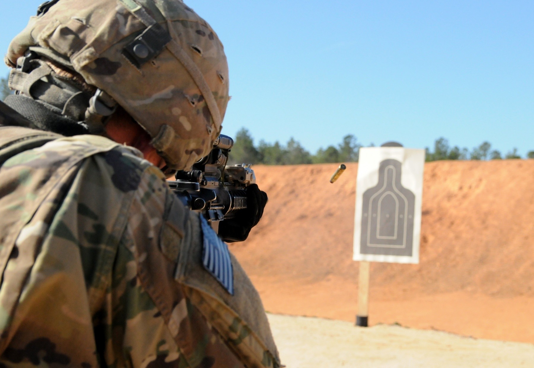 A Paratrooper from Delta Company, 2nd Battalion, 505th Parachute Infantry Regiment, 3rd Infantry Brigade Combat Team, 82nd Airborne Division, engages a target during a close-quarters marksmanship exercise on Fort Bragg, N.C., Feb. 23, 2017. (U.S. Arm...