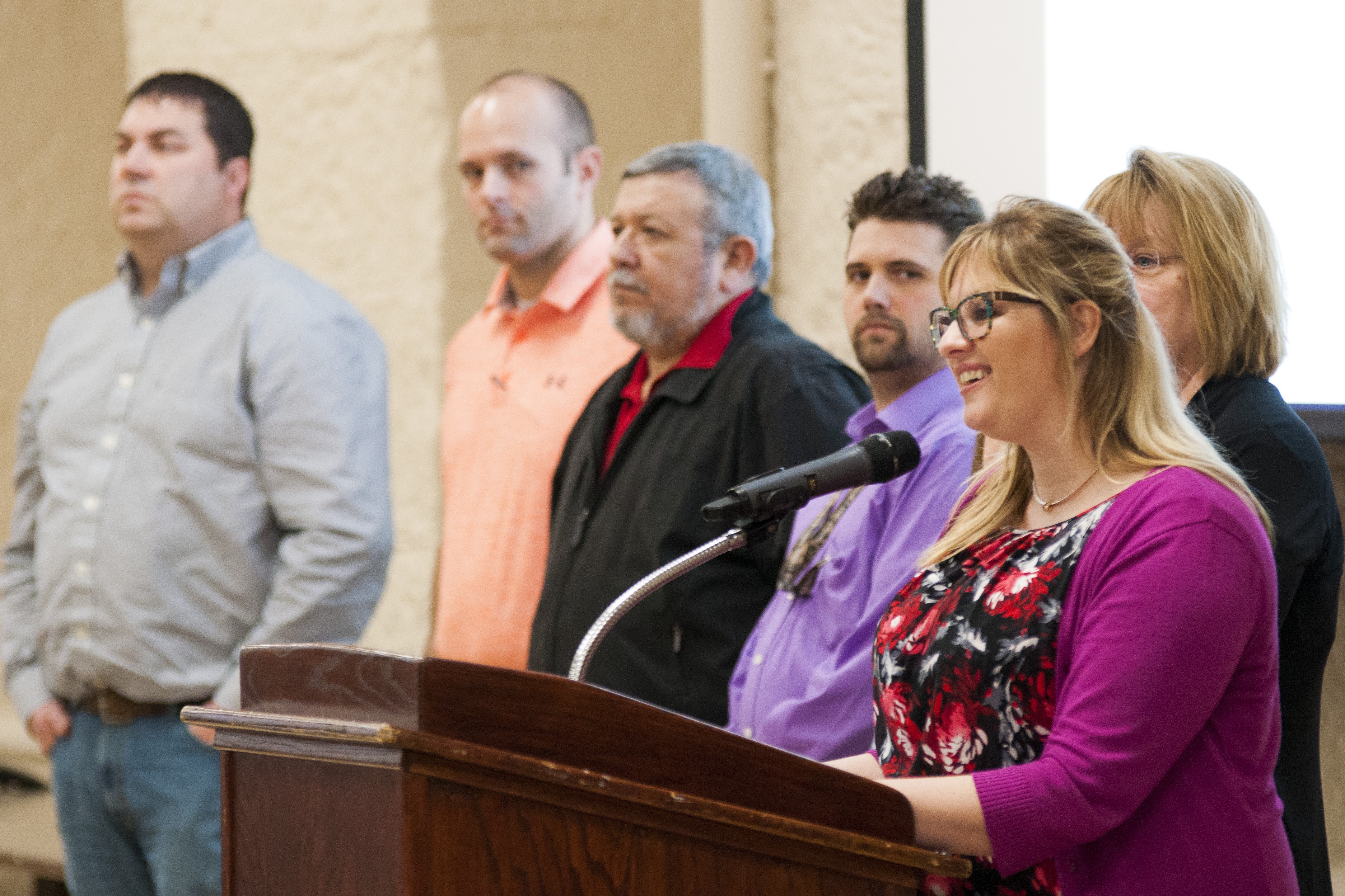 Samantha Keegan, Employee Advisory Council representative, introduced the new EAC and its members to the workforce. She said the council was created to improve open communication between employees and leadership with an emphasis on employees' concerns.