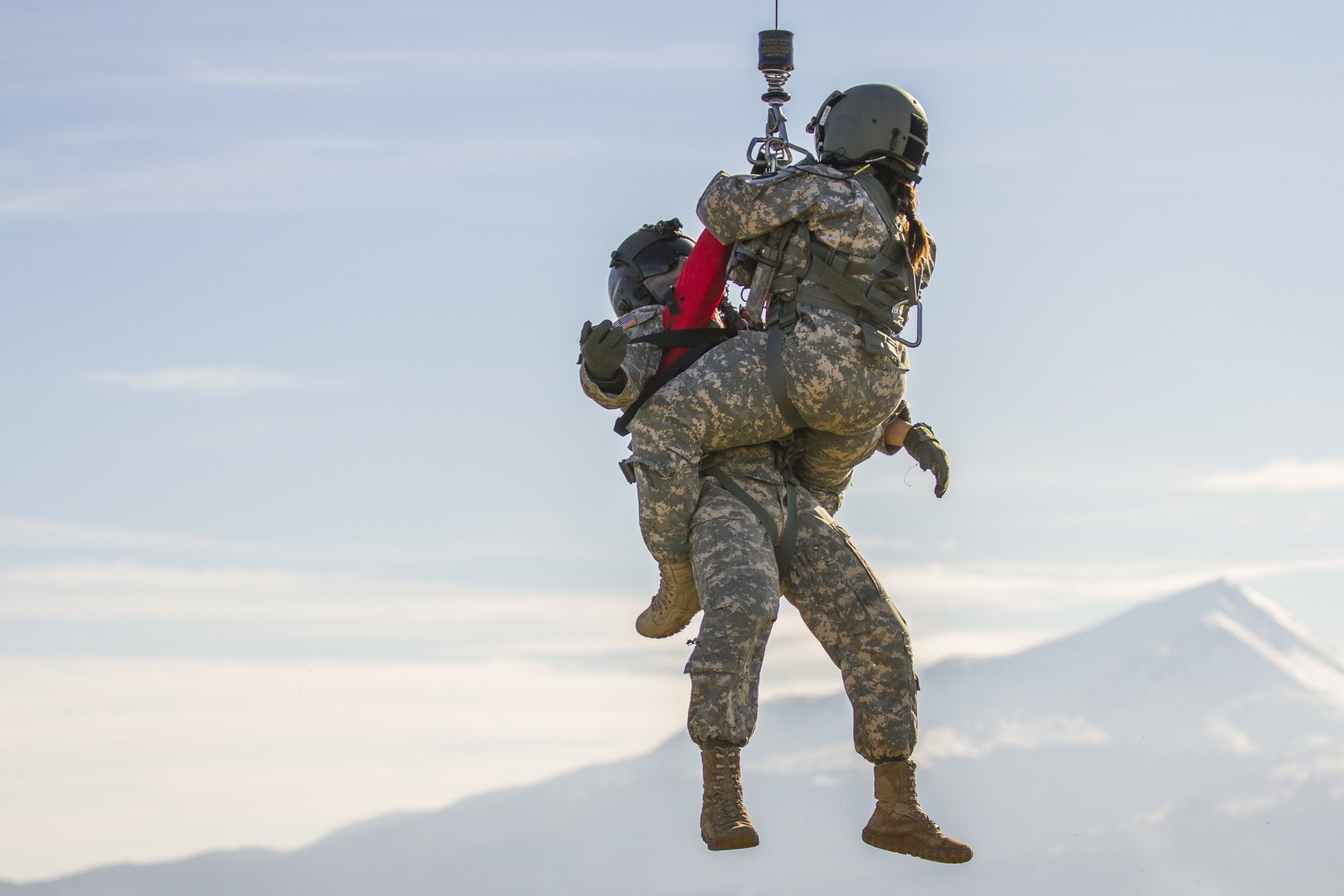 A flight medic, assigned to Multinational Battle Group-East's Southern Command Post MedEvac, evacuates a patient during live hoist extraction training on Camp Bondsteel, Kosovo, March 2. The training, consisting of individual, team and litter extract...