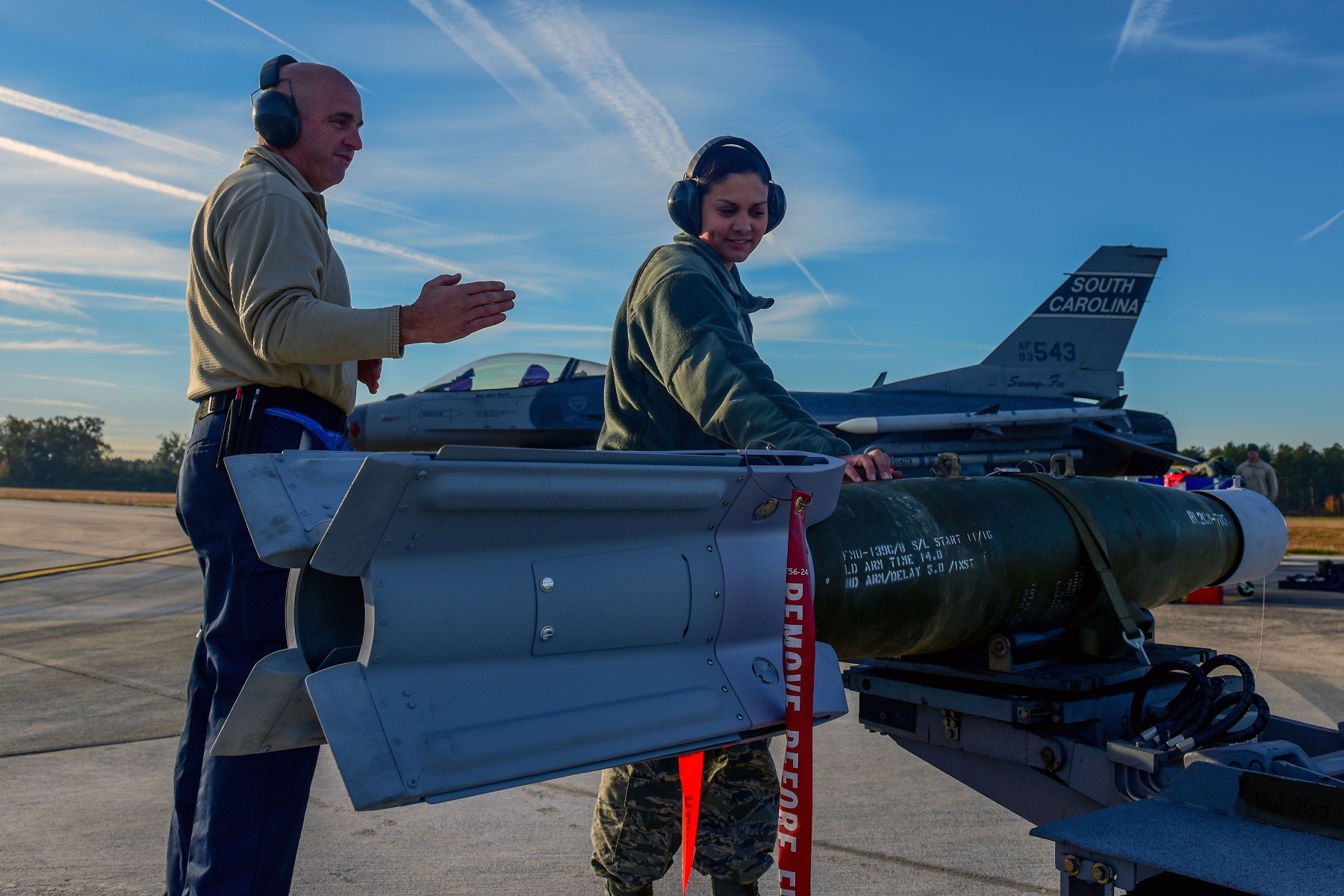 EASTOVER, SOUTH CAROLINA - There is an entire crew that gets an F-16 Fighting Falcon fighter jet mission-ready and in the air outside of just the pilot in the cockpit. One of the key members are the weapons loaders who load the munitions, install and remove alternate mission equipment, and perform end-of-runway procedures to assist the jet in takeoff.