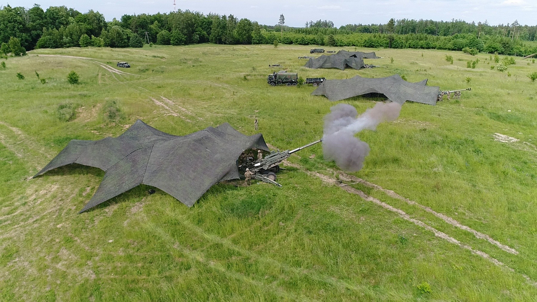 BEMOWO PISKE, Poland -- Calls of "Wet, wet, wet!" echoed across the gun line when British reconnaissance forces relayed a fire mission to a U.S. Fires Direction Center during a Fire Support Coordination Exercise at Land Forces Field Training Center, June 6.