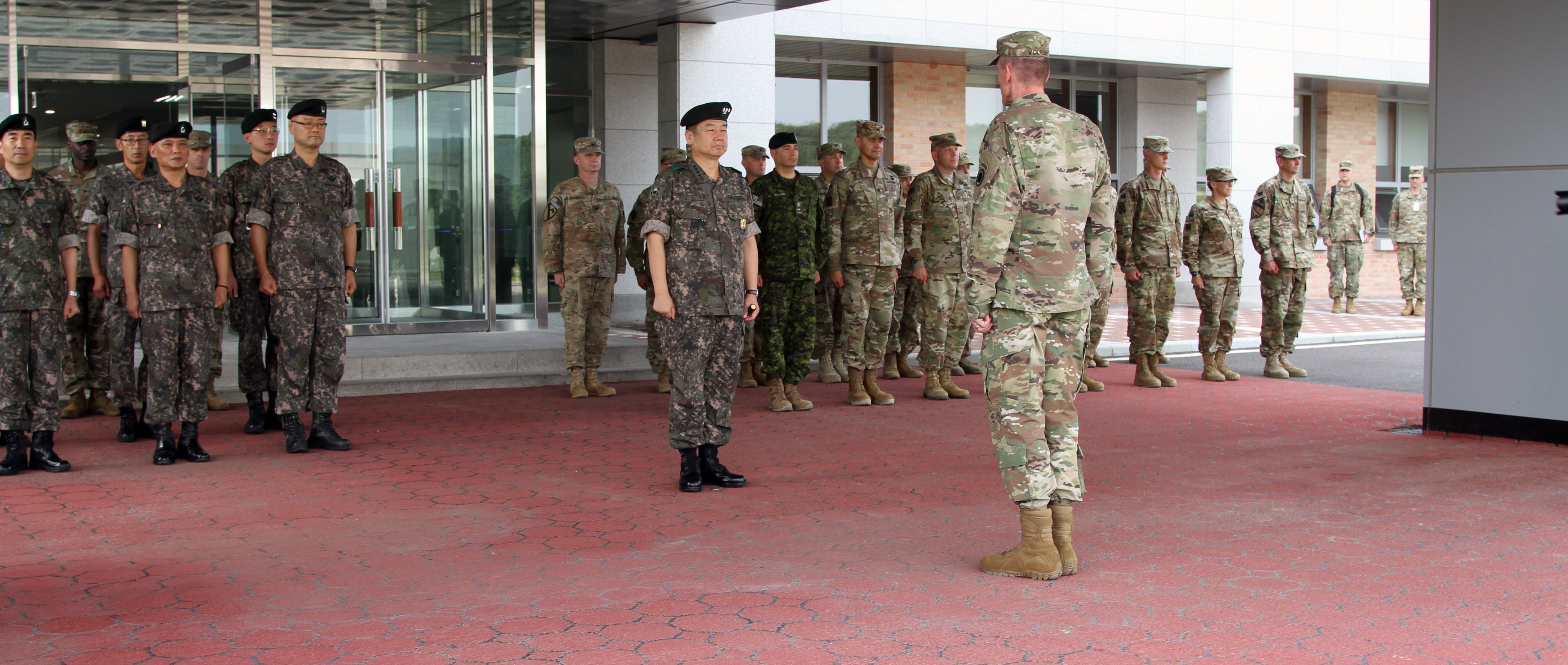Lt. Gen. Gary Volesky, I Corps commanding general, shakes hands with Soldiers from the Third Republic of Korea Army during a ceremony in Yongin, South Korea. UFG is designed to enhance readiness, protect the region and maintain stability on the Korea...