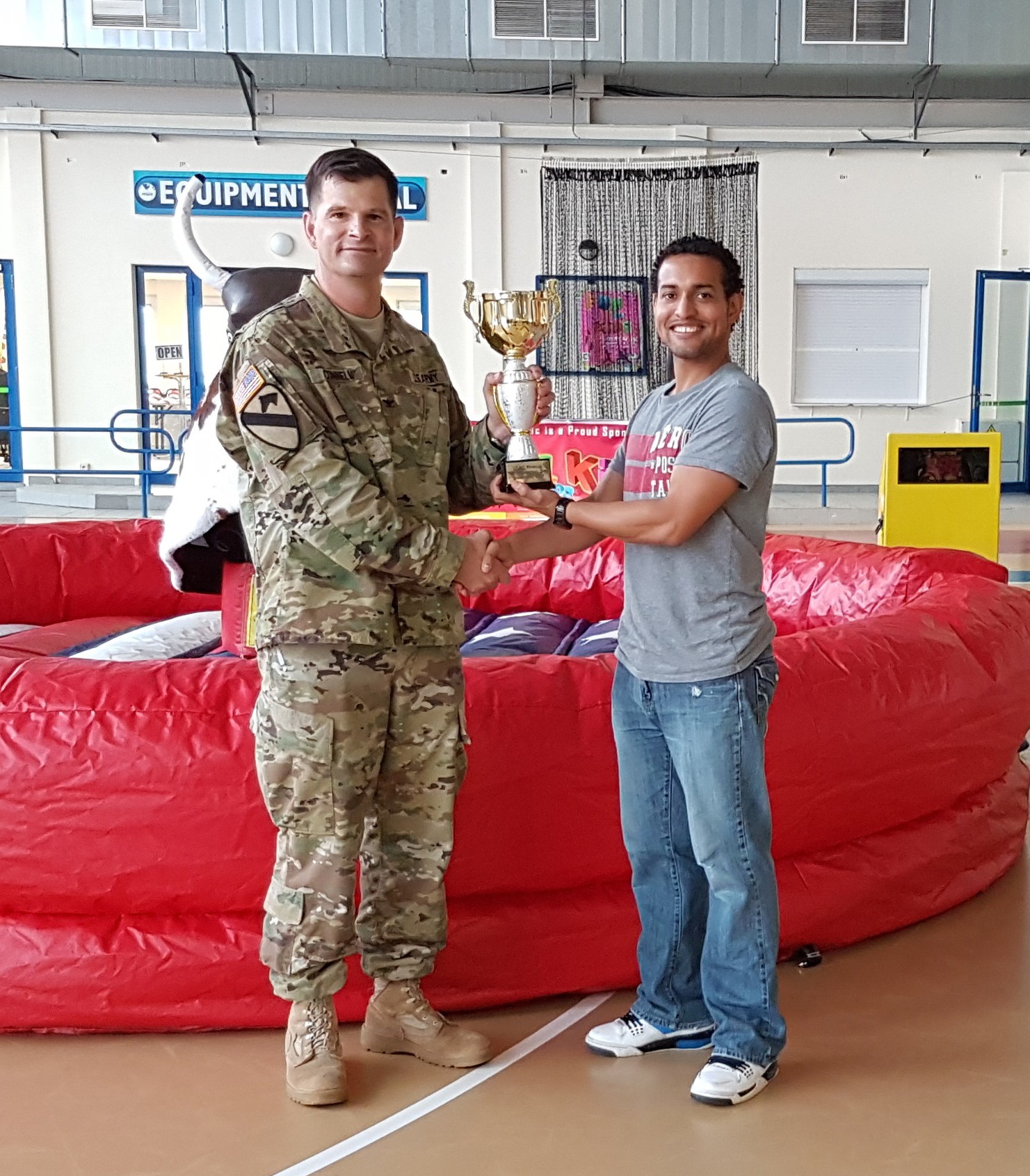 Garrison Commander Kurt Connell presents the first Commander's Cup to Isaac A. Bermudez, general engineer at Directorate of Public Works, at the garrison Organization Day Sept. 22, 2017, on Chièvres Air Base, Belgium. During the event, employe...