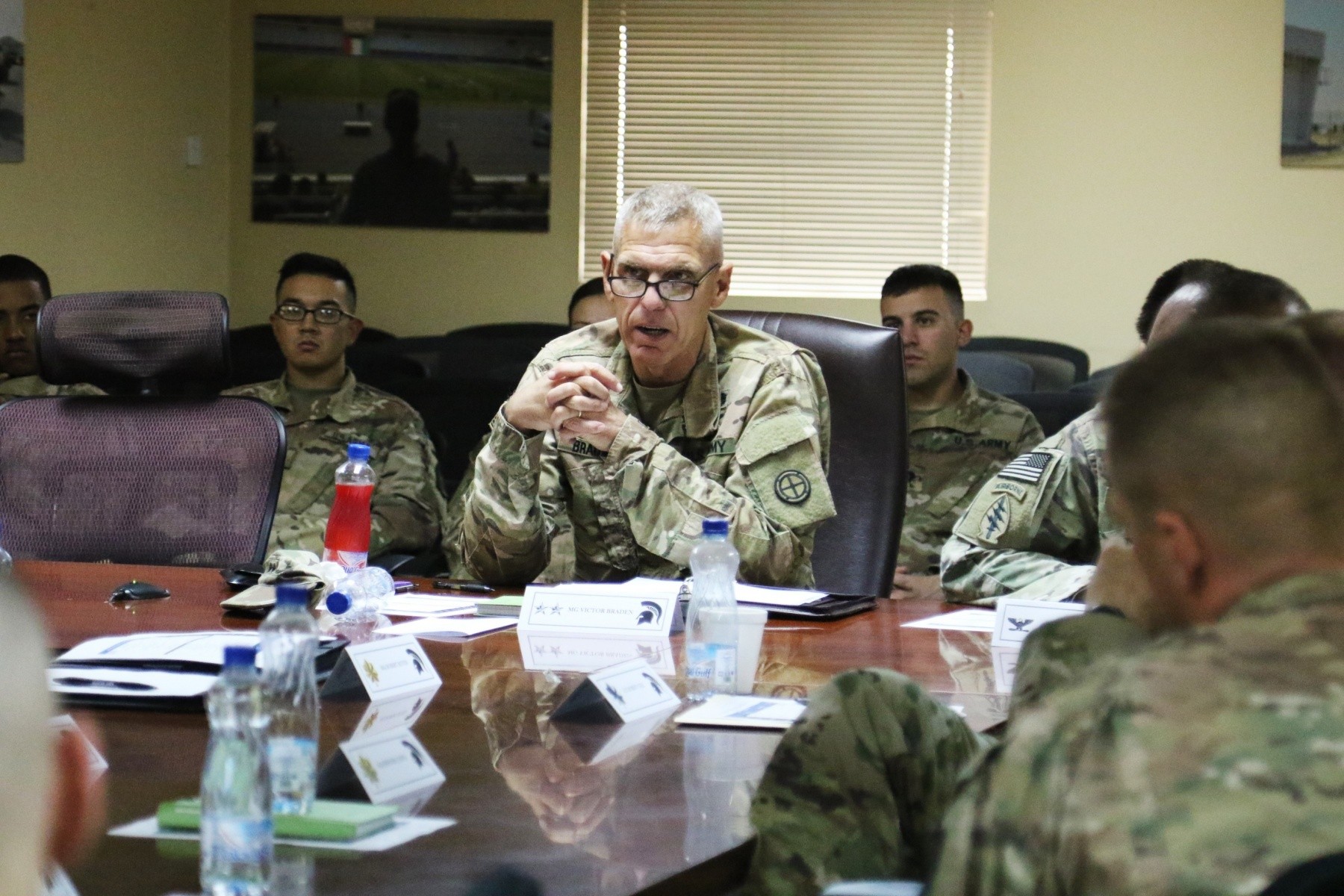 CAMP ARIFJAN, Kuwait - The Operation Spartan Shield Office of the Staff Judge Advocate hosted an all-day continuing legal education seminar Oct. 27. More than 30 military legal professionals from several different units throughout the area of operation attended, including 35th Infantry Division Commander Maj. Gen. Victor Braden, Kansas Army National Guard, who led the discussion.
