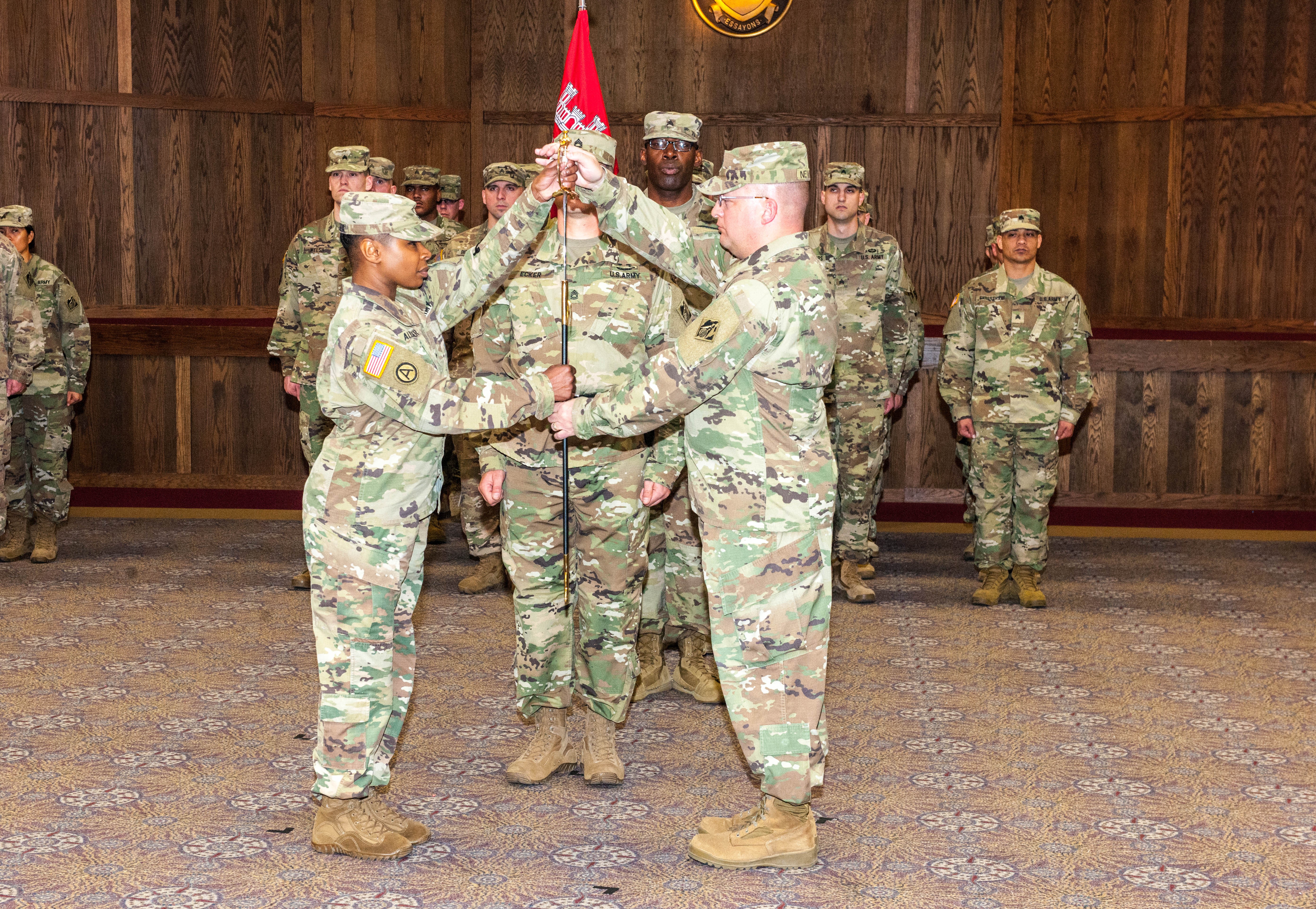 Following the change of command ceremony, the school said farewell to 1st Sgt. Barry Newnam II with a relinquishment of responsibility ceremony overseen by Command Sgt. Maj. Faith Alexander, 249th Engineer Battalion.