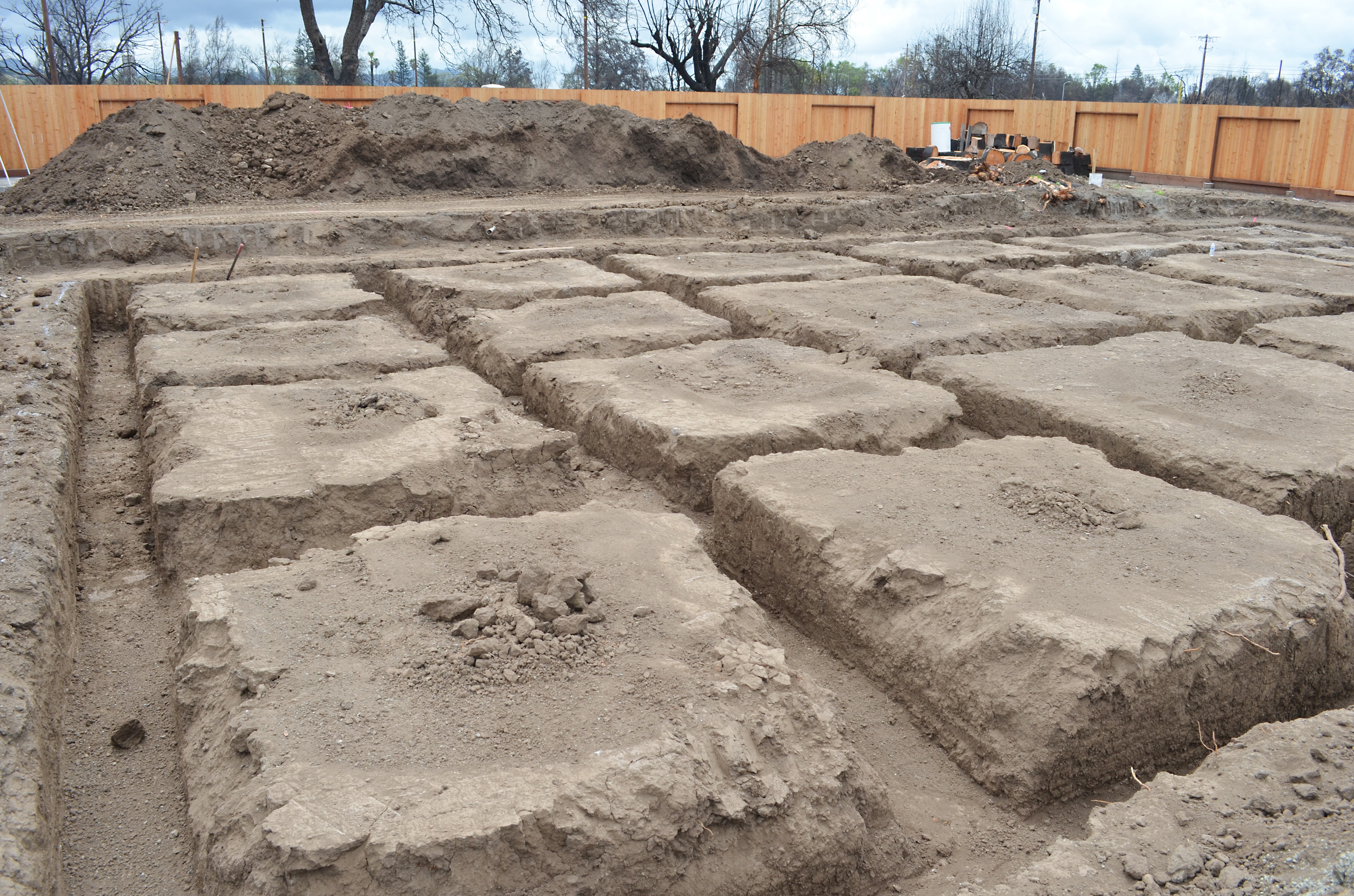 In Anderson's case, that means removing sufficient soil to accommodate the 100 cubic yards of cement it will take to construct a 24" deep "beam and grid" foundation.