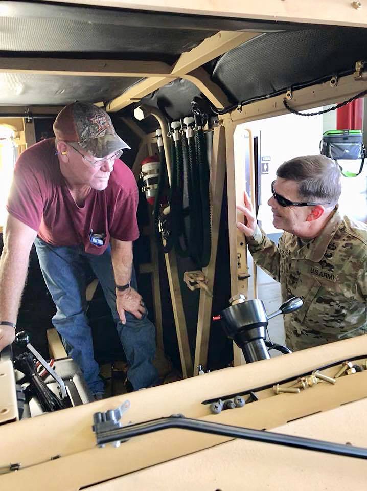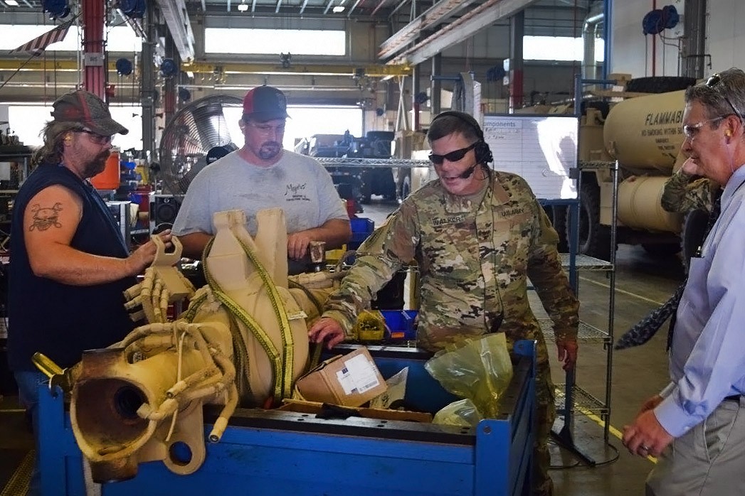 Following discussions with York, Walker spent his time talking to and thanking employees at the installation, rewarding 11 personnel with unit command coins. Walker learned that several of the employees working on the vehicles have family members deployed to the CENTCOM region.