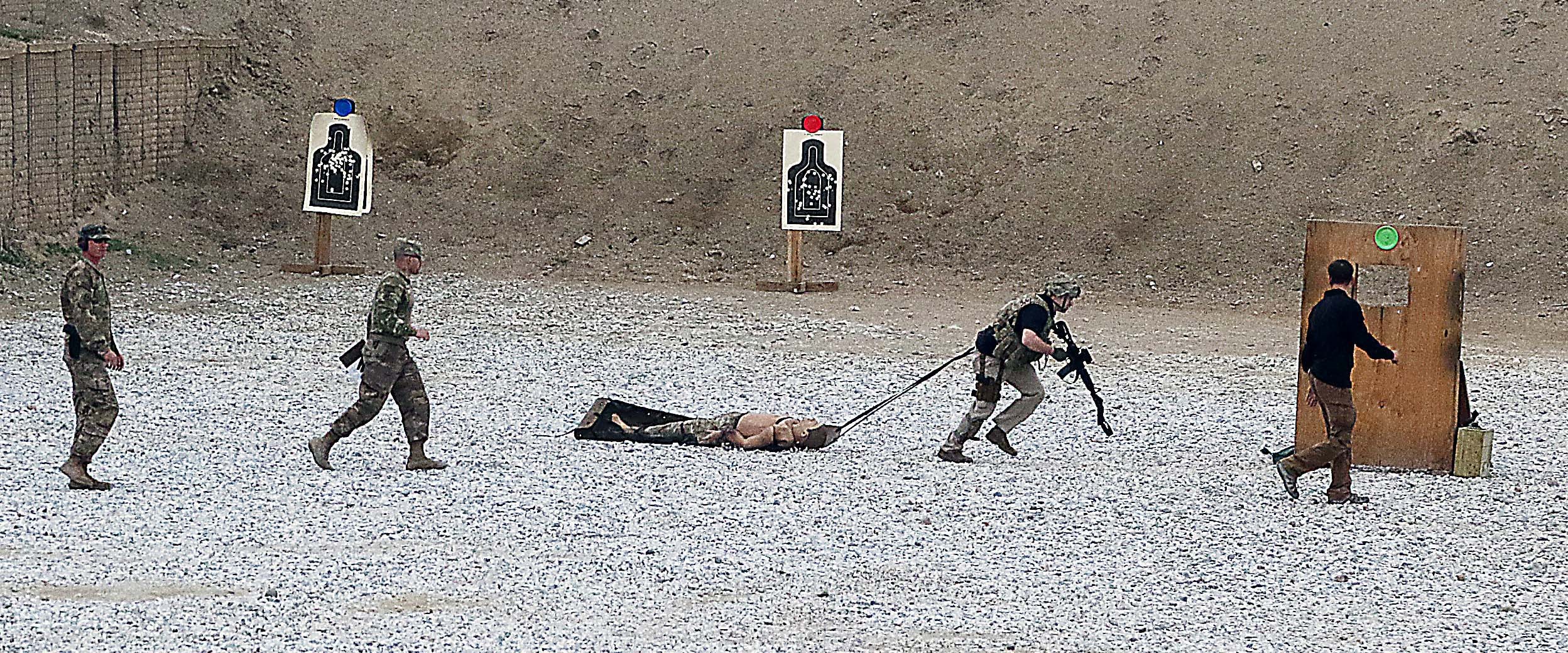 BAGRAM AIRFIELD, Afghanistan -- Joint Task Force Parwan conducted a Combat Skills Challenge here March 30 at Maholic Range consisting of firing from five different distances incorporating the four out of the six basic Soldier fundamentals: Shoot, Move, Communicate and Medicate.