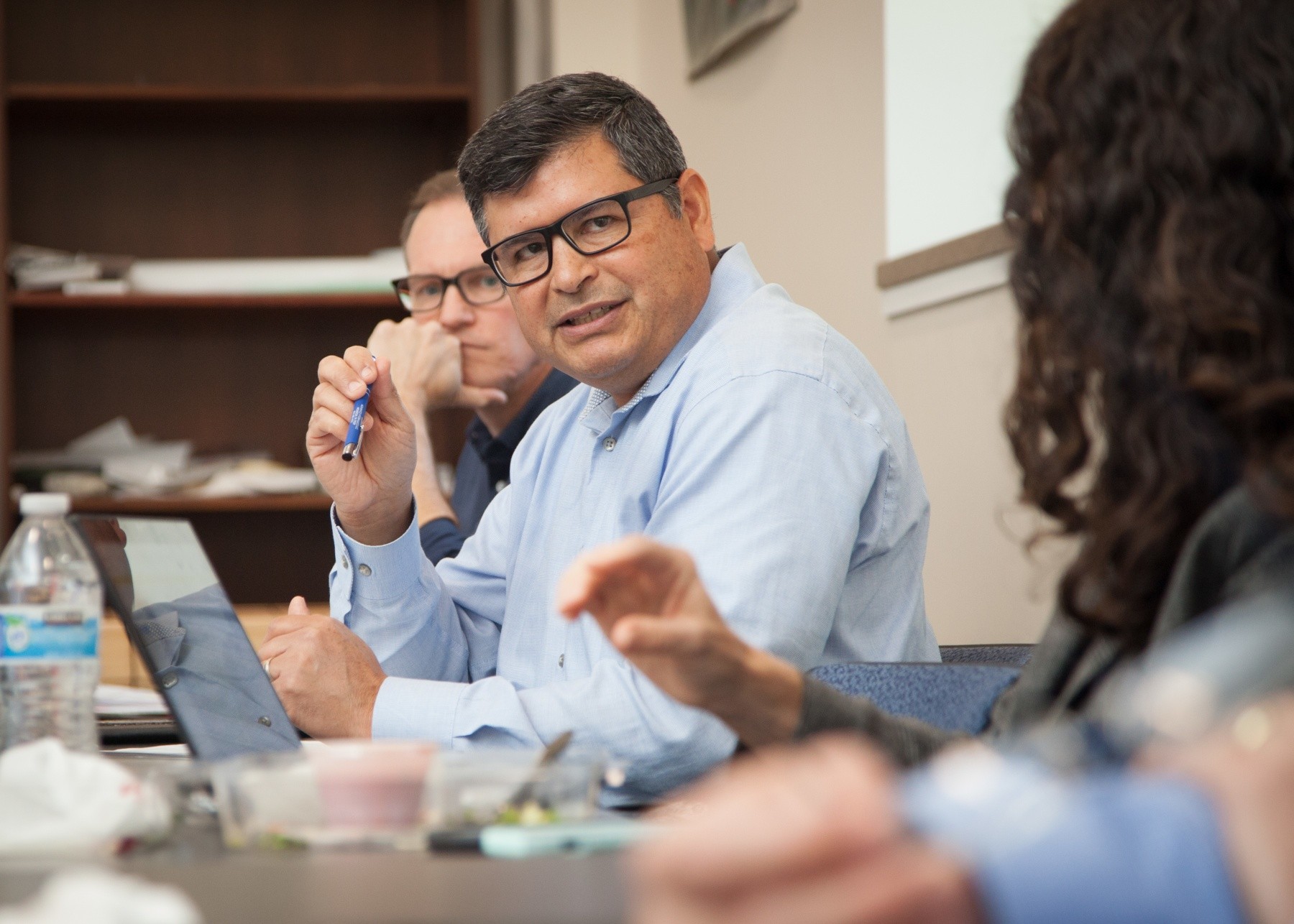 John Moreno, U.S. Army Corps of Engineers South Pacific Division small business director, discusses current and future civil works and military construction projects with senior military and civilian leaders from the division during a regional meetin...