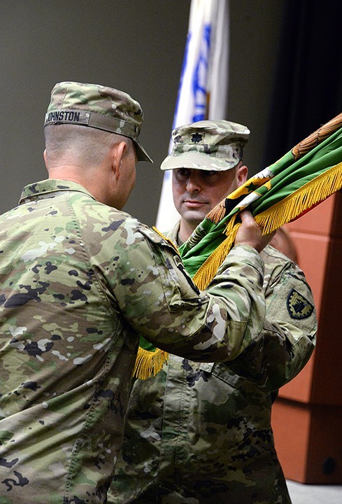 FORT LEAVENWORTH, Kansas (July 8, 2021) -- Lt. Col. Matthew Hofmann relinquished command of the 40th Military Police Battalion (Detention) to Lt. Col. John Magliocca before retiring after 28 years of active-duty service in a ceremony July 1 in Eisenhower Hall’s DePuy Auditorium.
