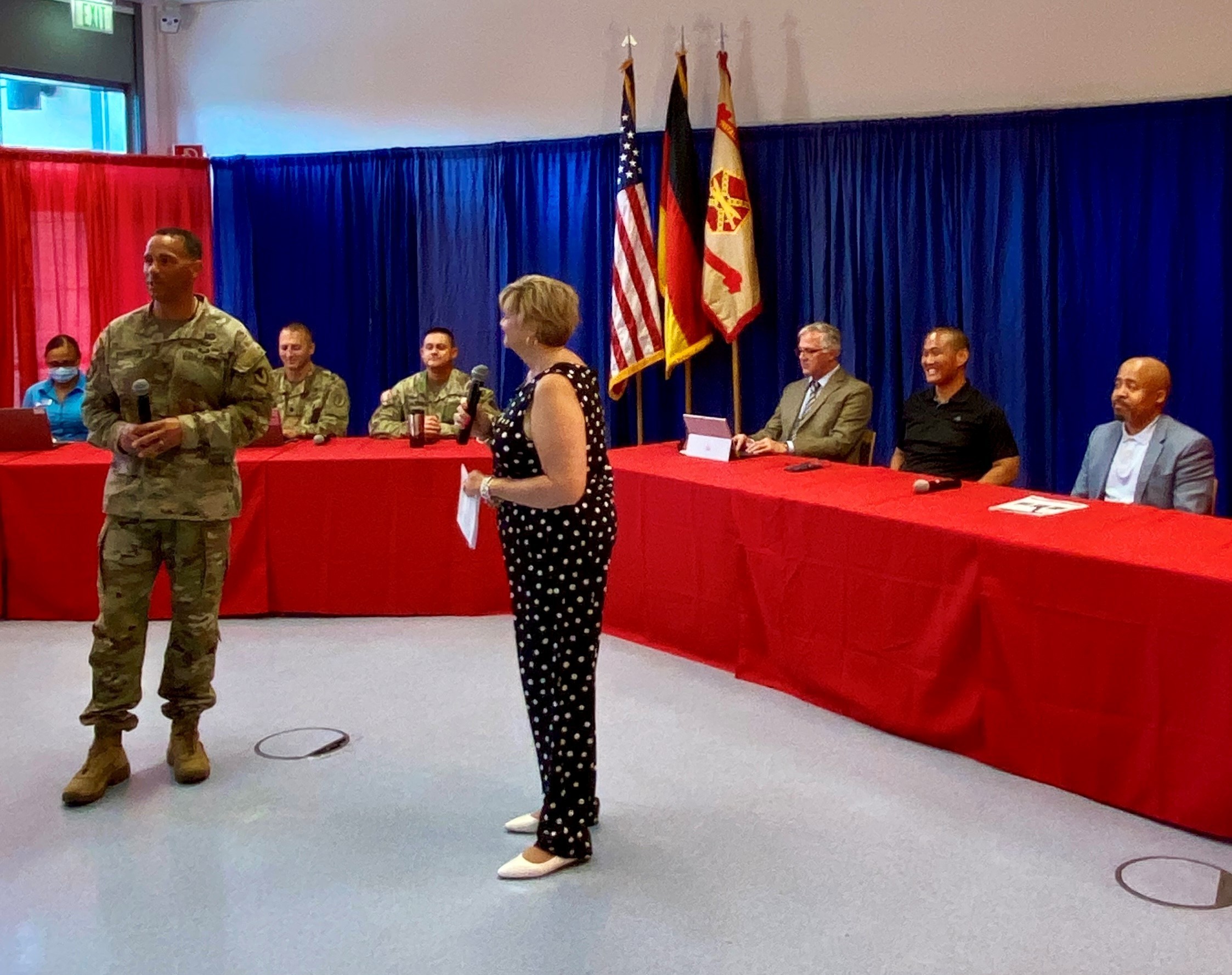 WIESBADEN, Germany – The U.S. Army Garrison Wiesbaden hosted a town hall July 28 from the Wiesbaden Entertainment Center and live-streamed on Facebook. The town hall provided garrison staff from each directorate answering questions from the community posted onto Facebook prior to and during the town hall.