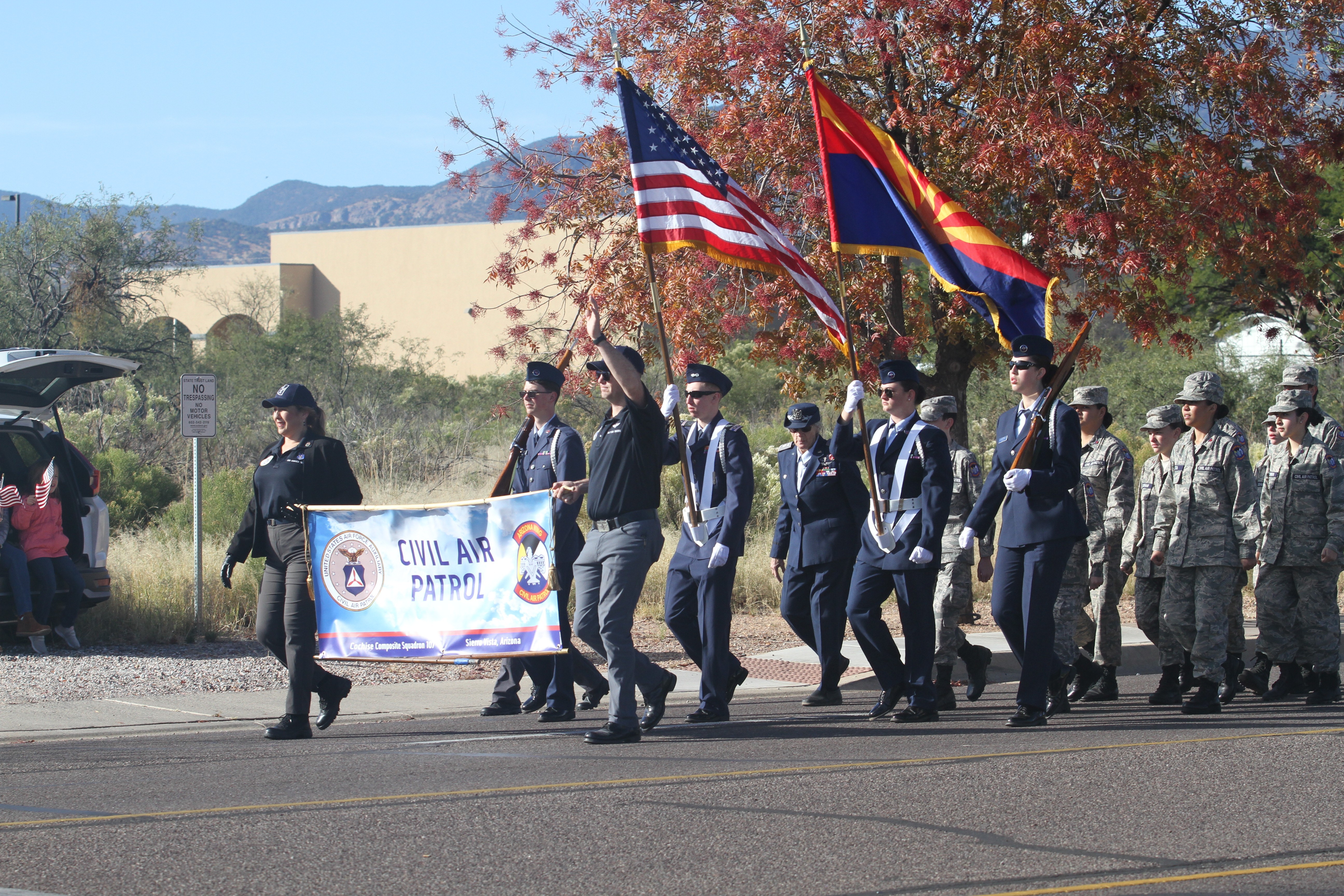 Members of the Southern Arizona Civil Air Patrol Squadron walk down Fry Boulevard as they unit participates in the City of Sierra Vista's 27th Annual Veterans Day Parade.