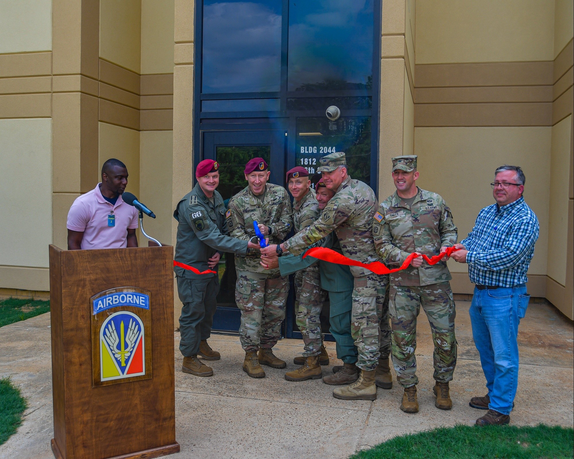 FORT POLK, La. — A ribbon cutting ceremony took place in front of the newly completed barracks (2044/2045) at Joint Readiness Training Center and Fort Polk May 23.